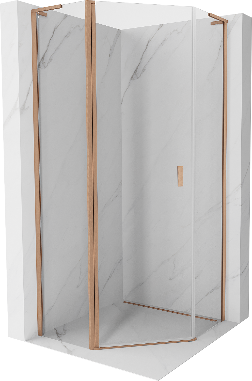 Mexen Mist L kabina prysznicowa pięciokątna uchylna 80 x 80 cm, transparent, miedź szczotkowana - 8A8L-080-080-65-00