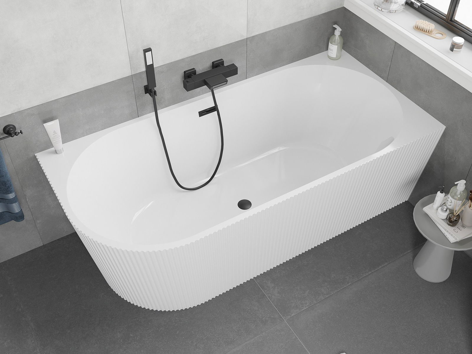 • Mexen Silo wanna wolnostojąca narożna prawa ryflowana  150 x 75 cm, biała, przelew czarny - 52891507500P-70