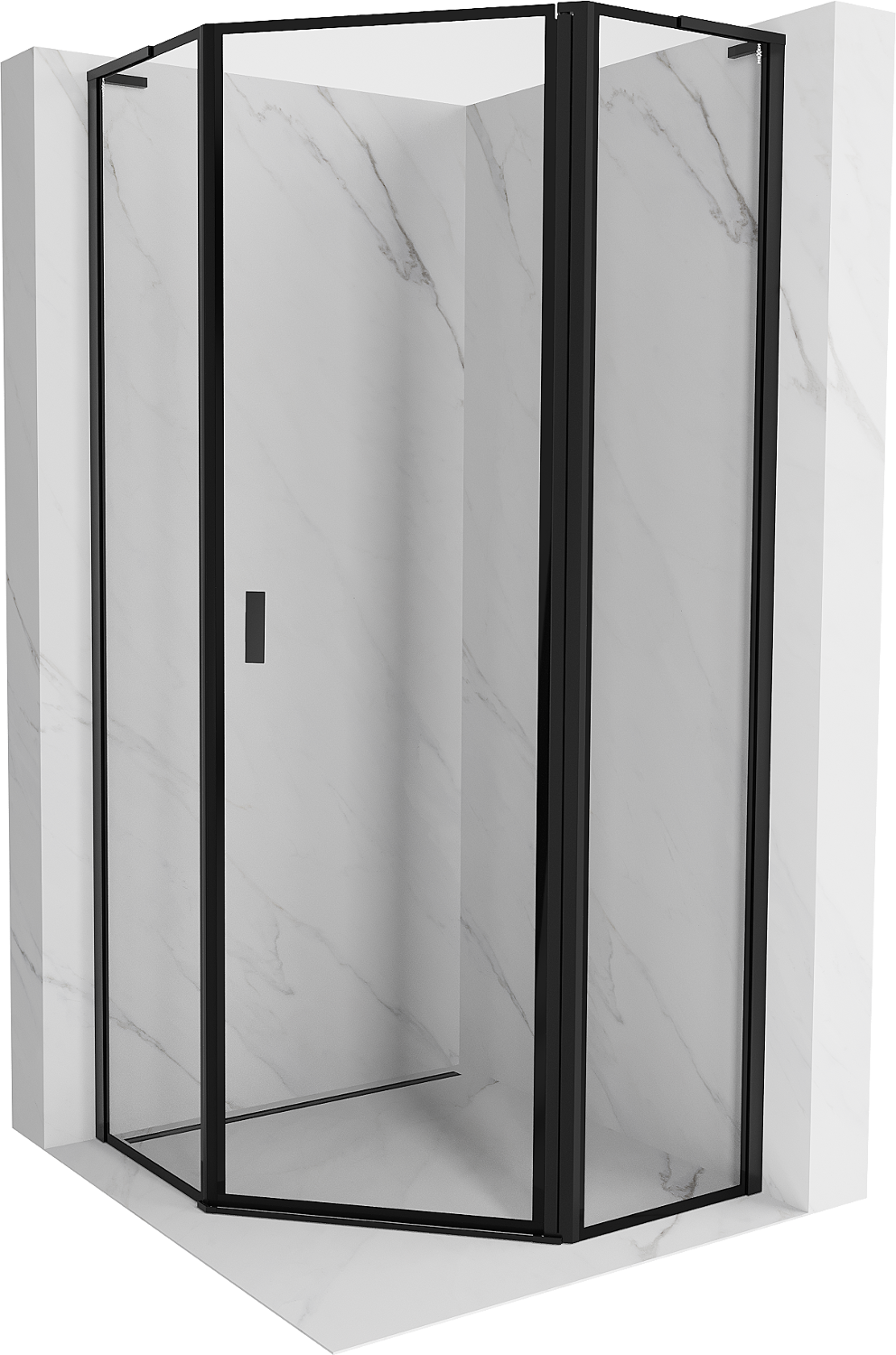 Mexen Mist L kabina prysznicowa pięciokątna uchylna prawa 80 x 80 cm, czarna ramka, czarna - 8A8L-080-080-70-70-P