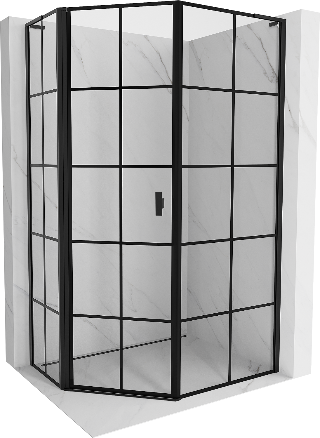 Mexen Mist L kabina prysznicowa pięciokątna asymetryczna uchylna lewa 90 x 100 cm, czarna kratka, czarna - 8A8L-090-100-70-77-L