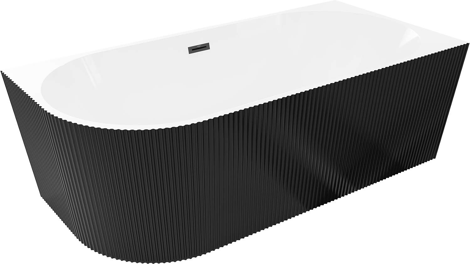 Mexen Silo wanna wolnostojąca narożna prawa ryflowana 150 x 75 cm, biała/czarna, przelew czarny - 52891507575P-70