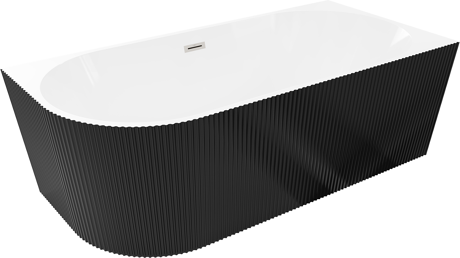 Mexen Silo wanna wolnostojąca narożna prawa ryflowana 150 x 75 cm, biała/czarna, przelew nikiel szczotkowany - 52891507575P-97