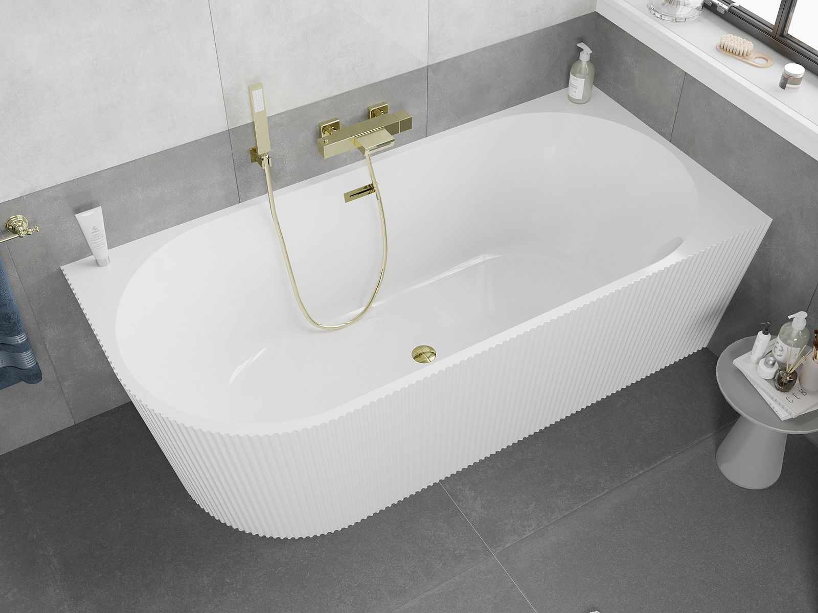 Mexen Silo wanna wolnostojąca narożna prawa ryflowana 170 x 80 cm, biała, przelew złoty - 52891708000P-50