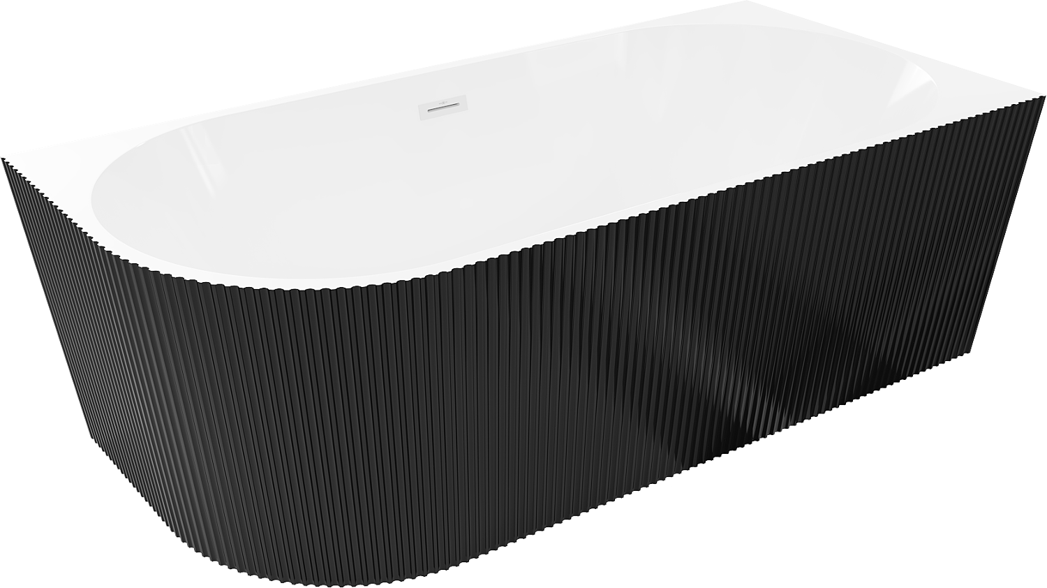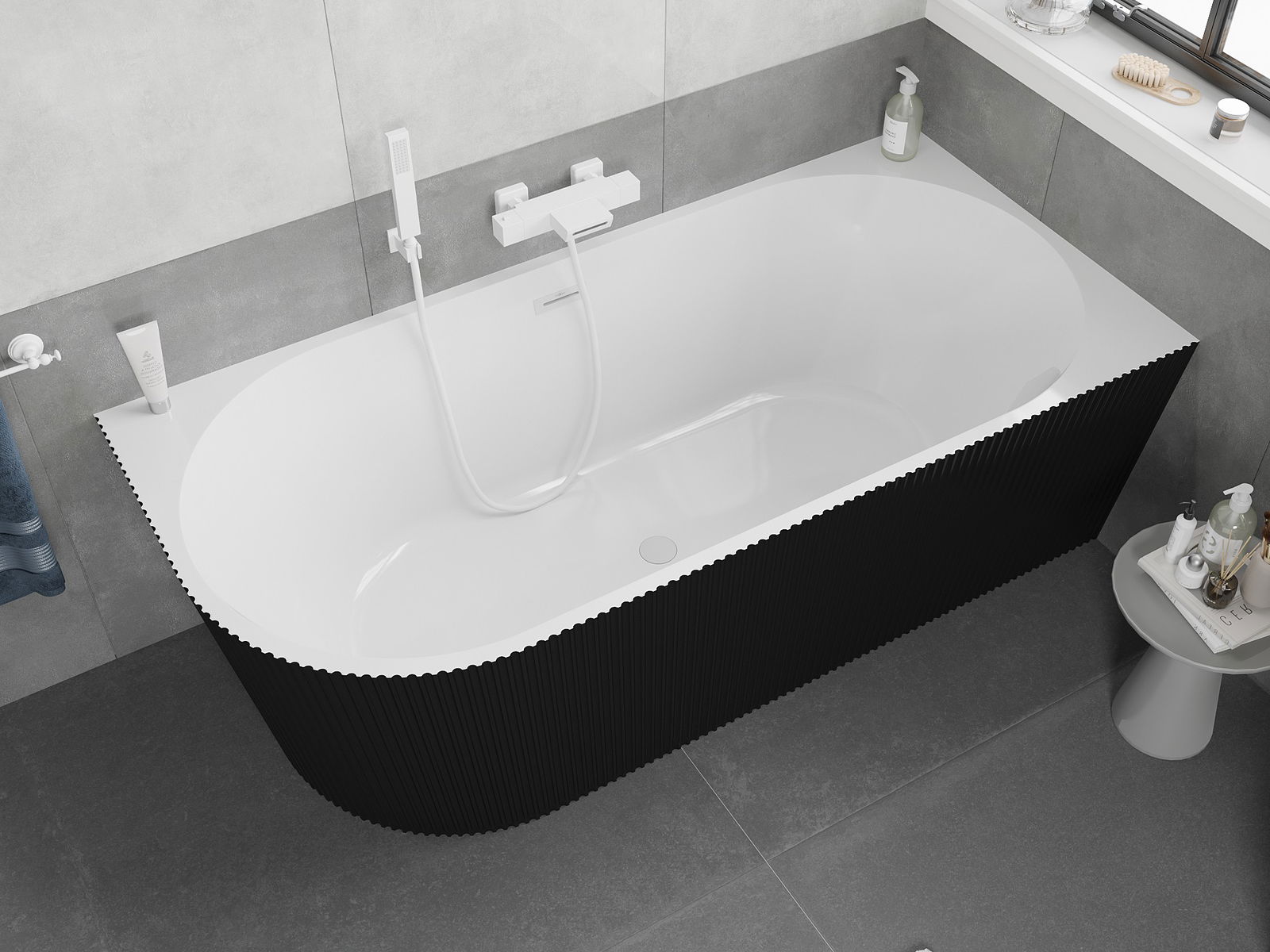 Mexen Silo wanna wolnostojąca narożna prawa ryflowana 170 x 80 cm, biała/czarna, przelew biały - 52891708075P-20