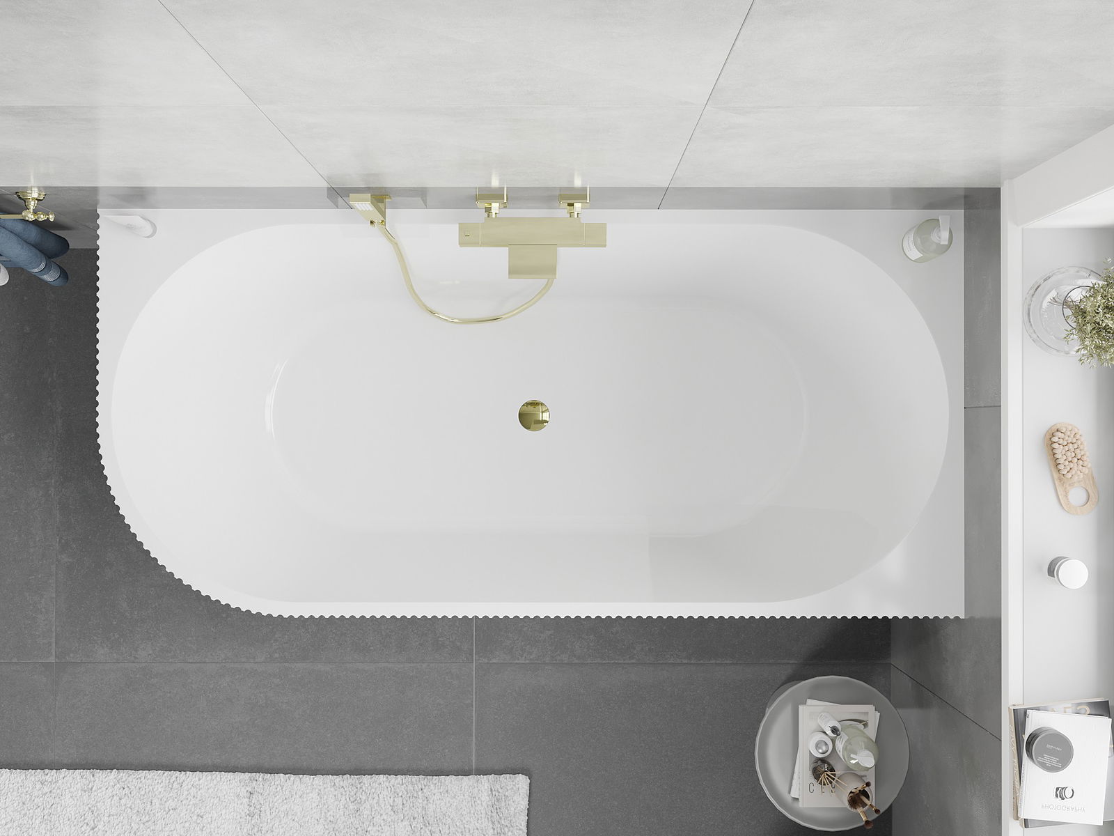 Mexen Silo wanna wolnostojąca narożna prawa ryflowana  170 x 80 cm, biała/czarna, przelew złoty - 52891708075P-50