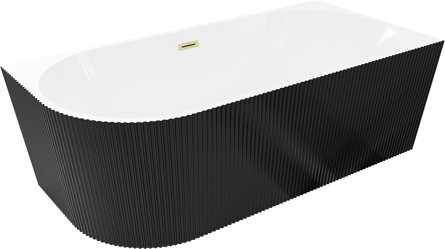 • Mexen Silo wanna wolnostojąca narożna prawa ryflowana  170 x 80 cm, biała/czarna, przelew złoty szczotkowany - 52891708075P-55