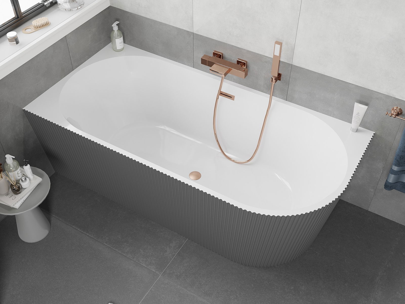 • Mexen Silo wanna wolnostojąca narożna lewa ryflowana  170 x 80 cm, biała/szara, przelew miedź szczotkowana - 52891708062L-65