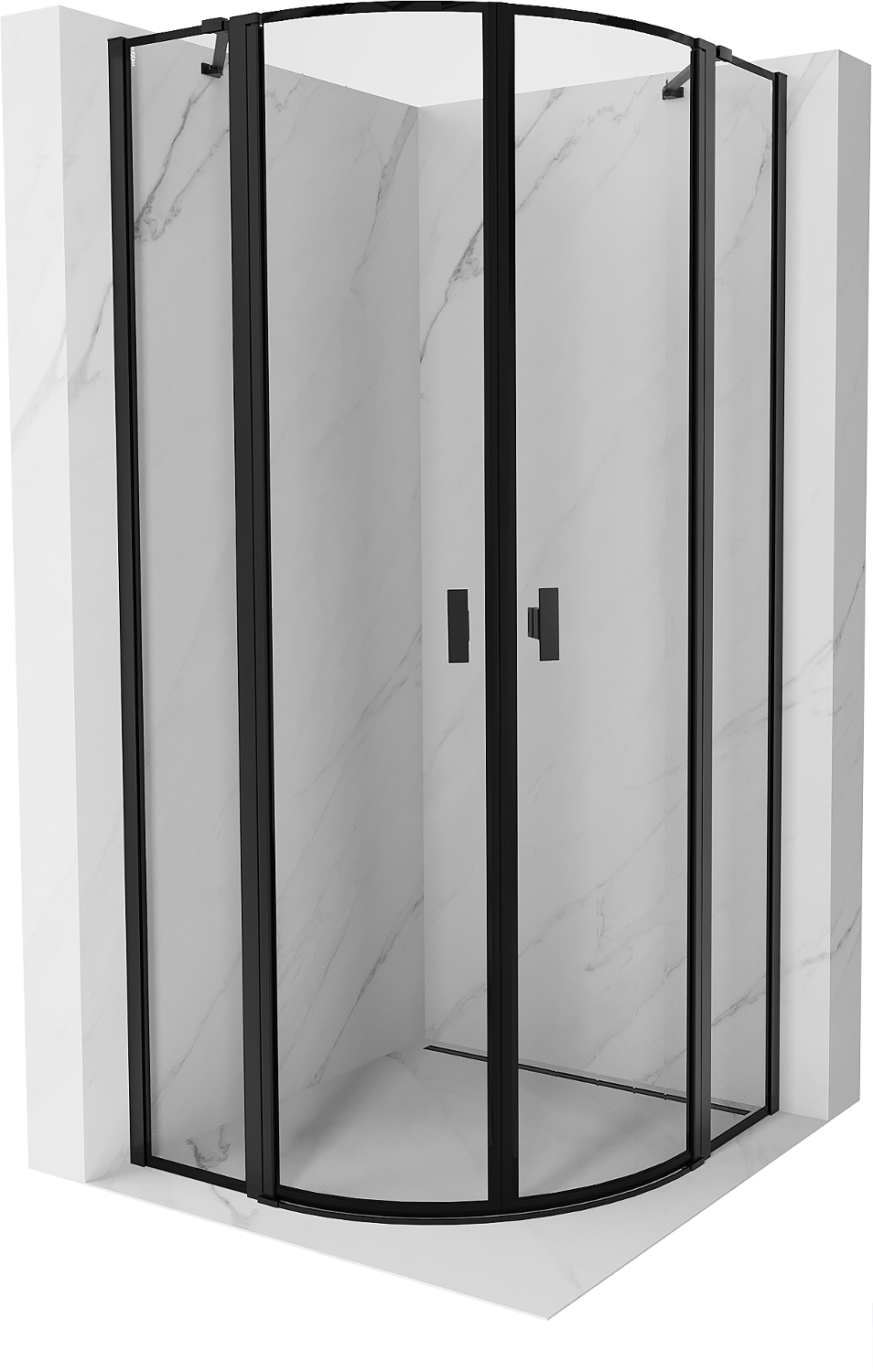 • Mexen Mist kabina prysznicowa półokrągła uchylna 90 x 90 cm, czarna ramka, czarna - 8A32-090-090-70-70