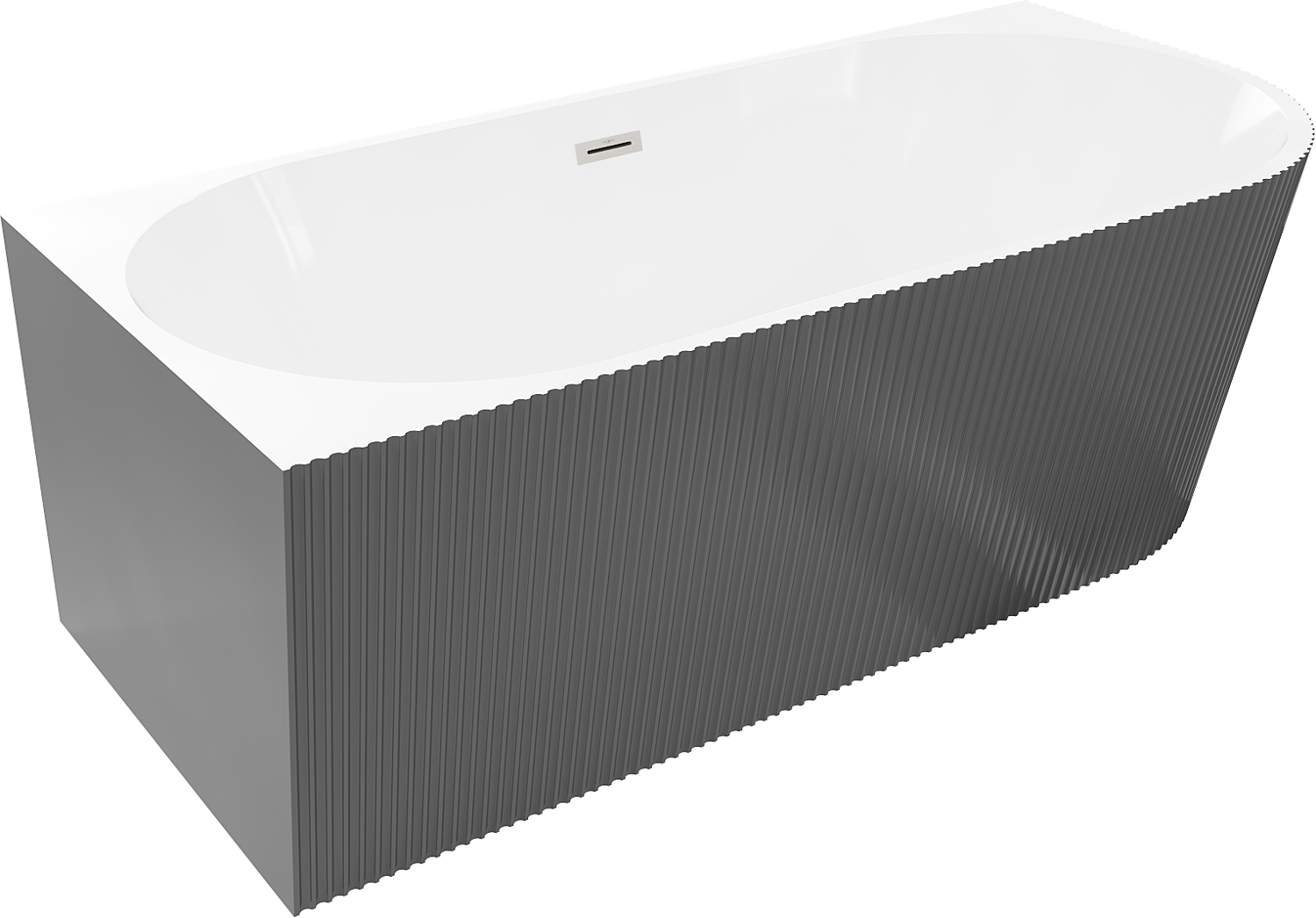 • Mexen Silo wanna wolnostojąca narożna lewa ryflowana  170 x 80 cm, biała/szara, przelew nikiel szczotkowany - 52891708062L-97