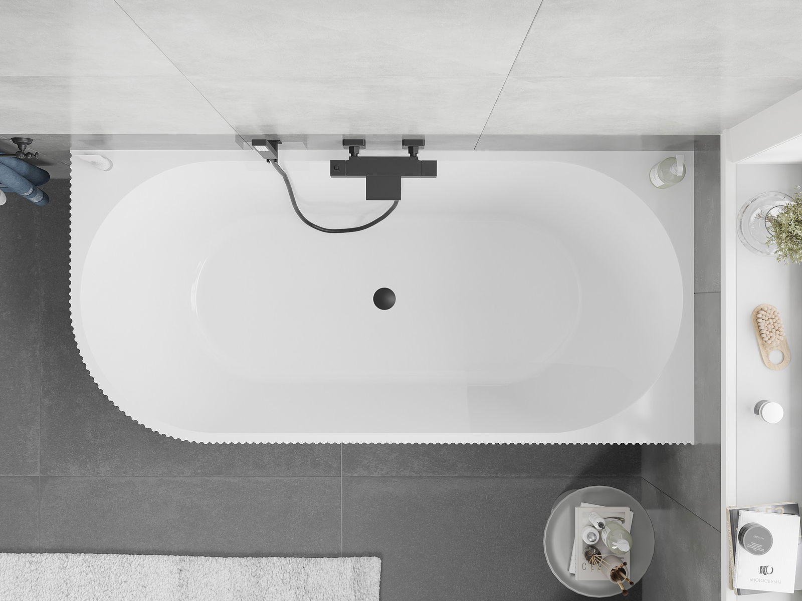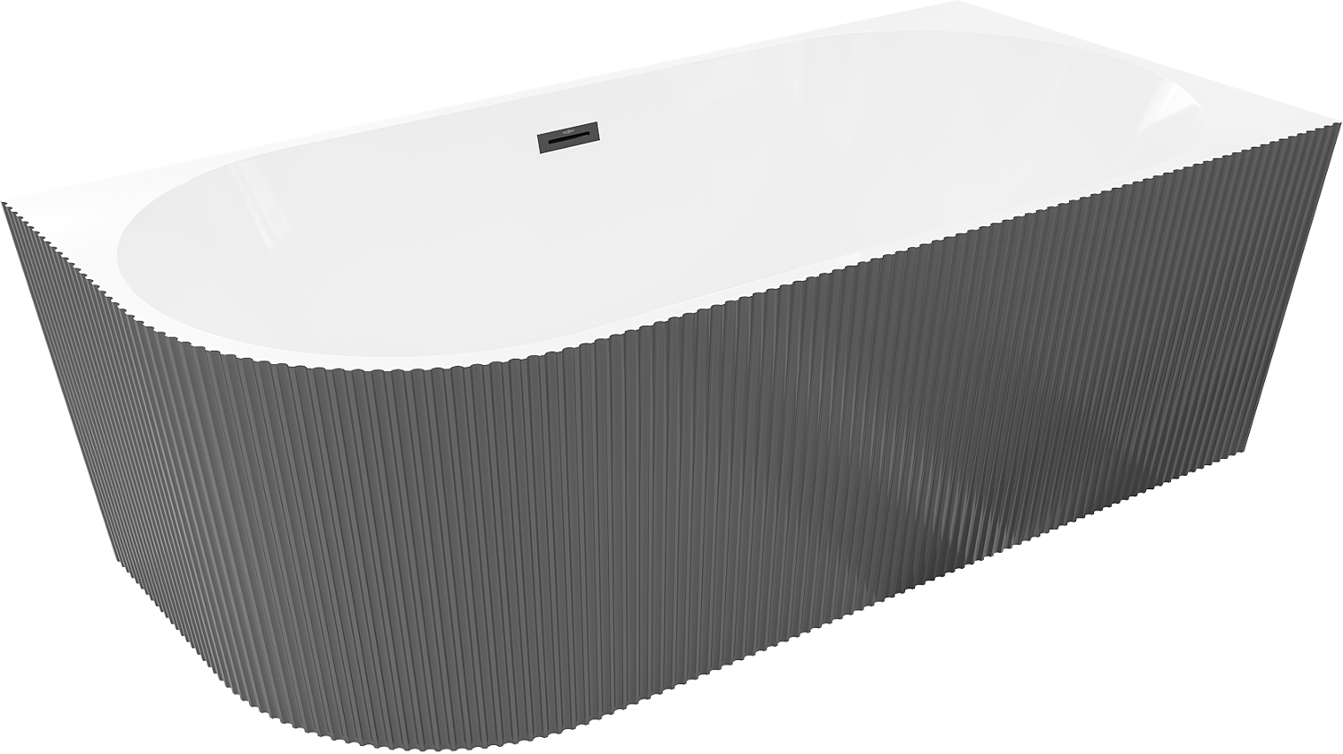 Mexen Silo wanna wolnostojąca narożna prawa ryflowana  150 x 75 cm, biała/szara, przelew czarny - 52891507562P-70