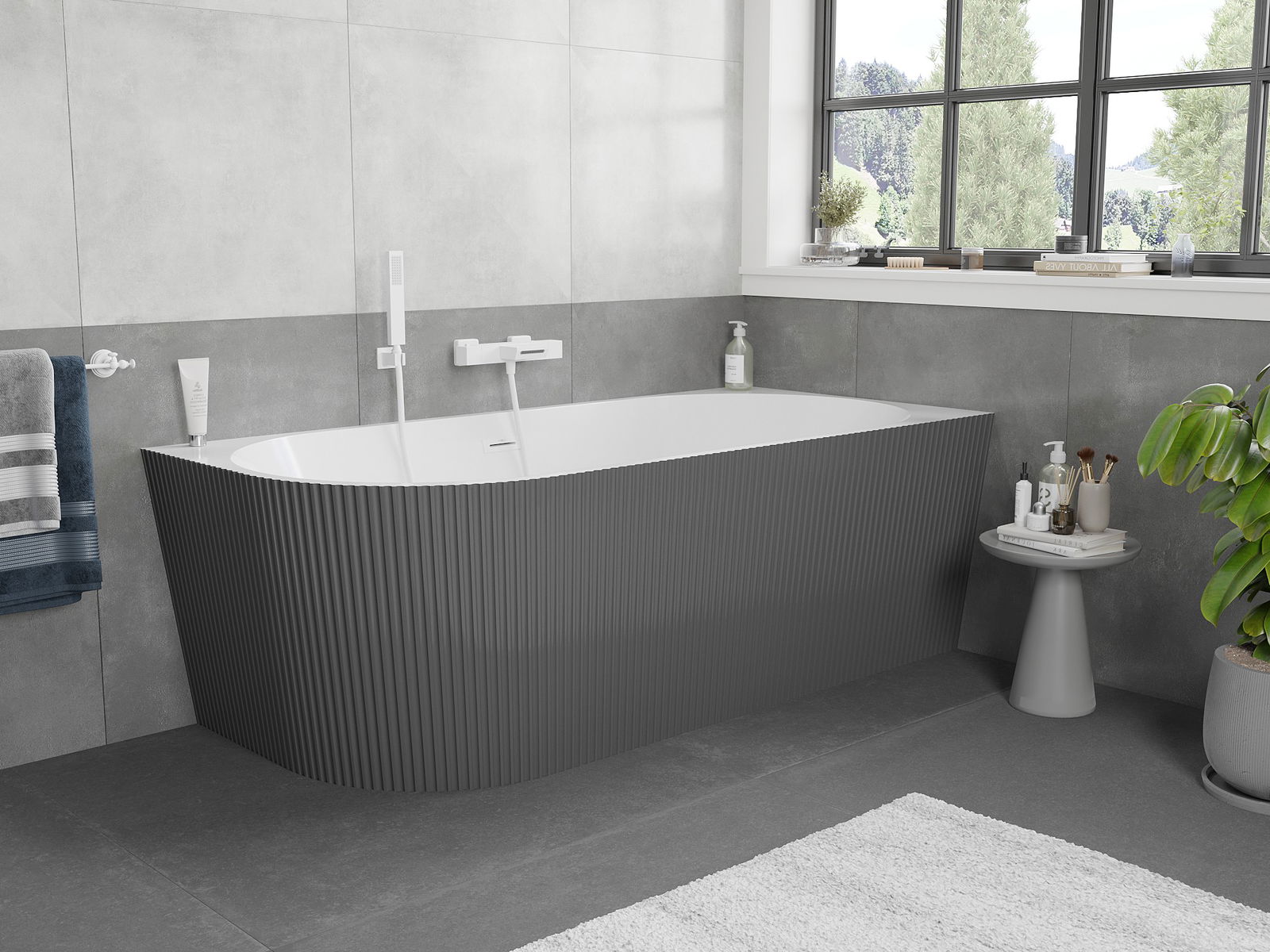 Mexen Silo wanna wolnostojąca narożna prawa ryflowana  170 x 80 cm, biała/szara, przelew biały - 52891708062P-20