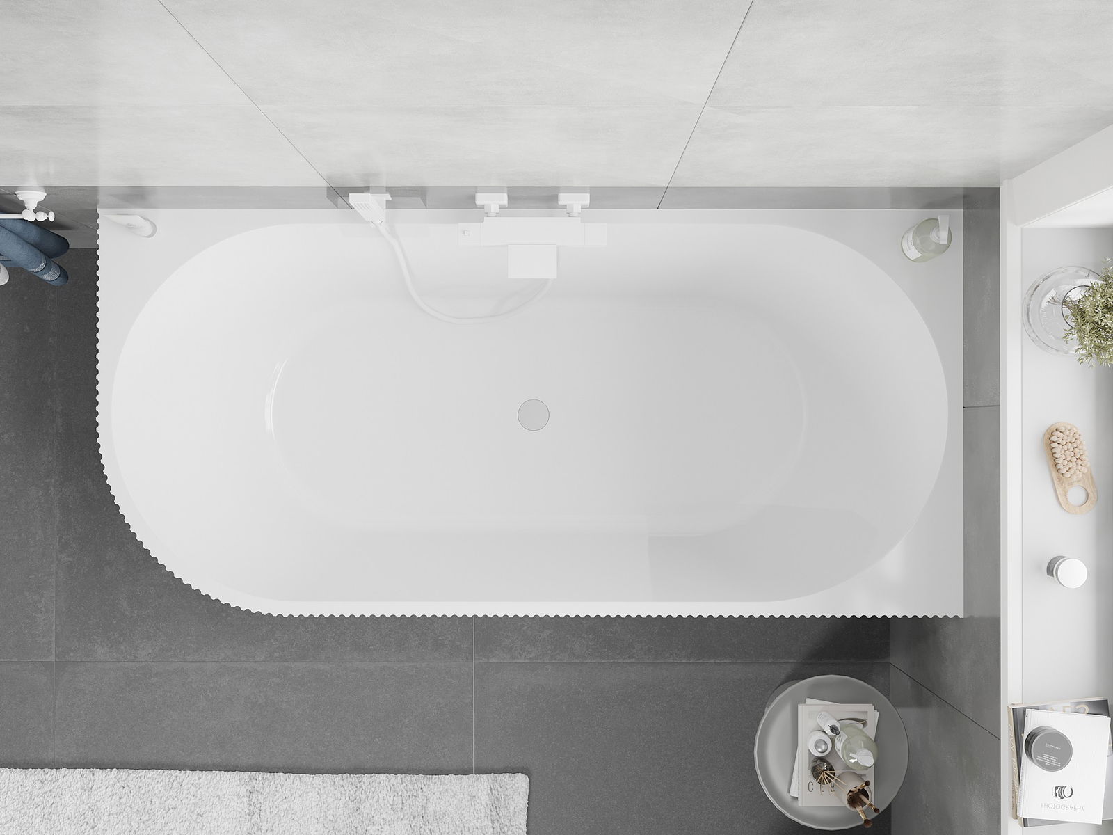 • Mexen Silo wanna wolnostojąca narożna prawa ryflowana  170 x 80 cm, biała/szara, przelew biały - 52891708062P-20