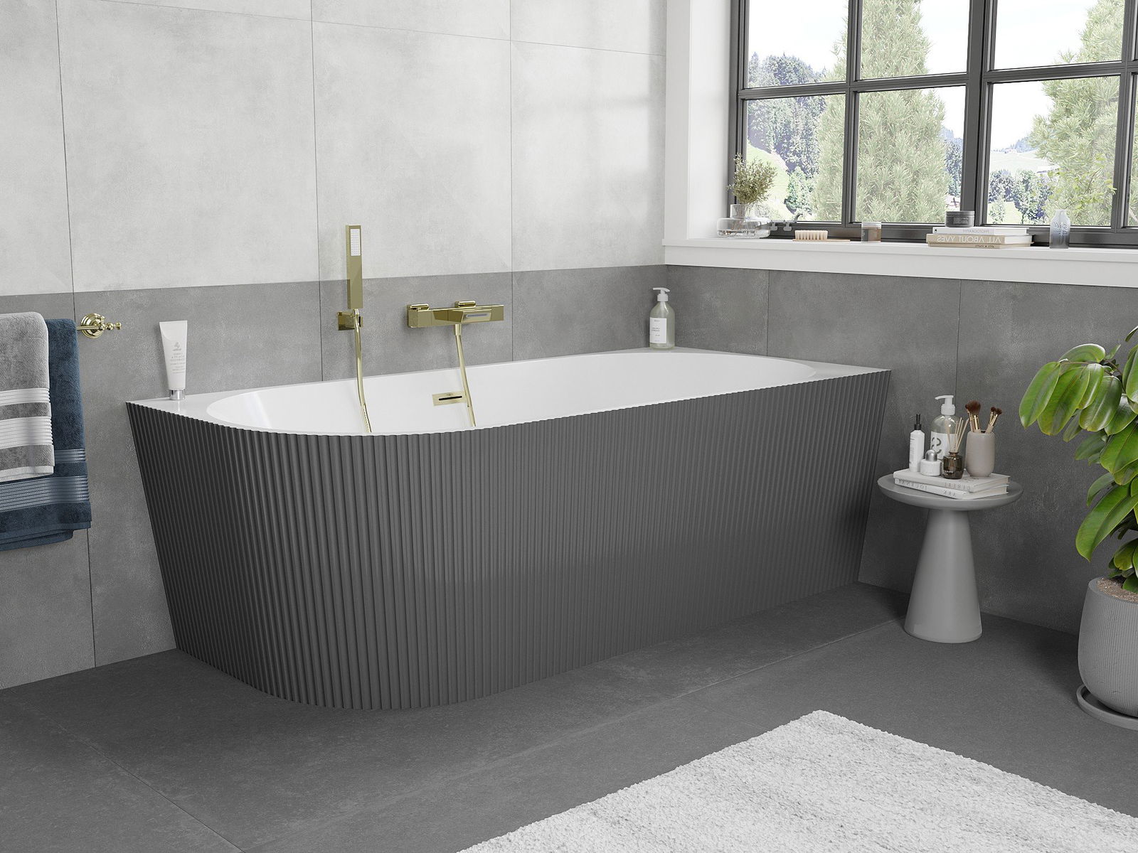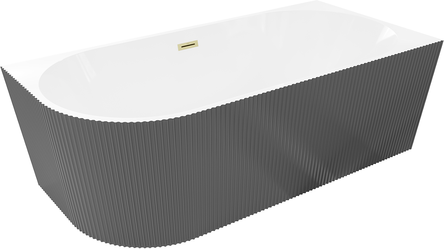Mexen Silo wanna wolnostojąca narożna prawa ryflowana  170 x 80 cm, biała/szara, przelew złoty szczotkowany - 52891708062P-55