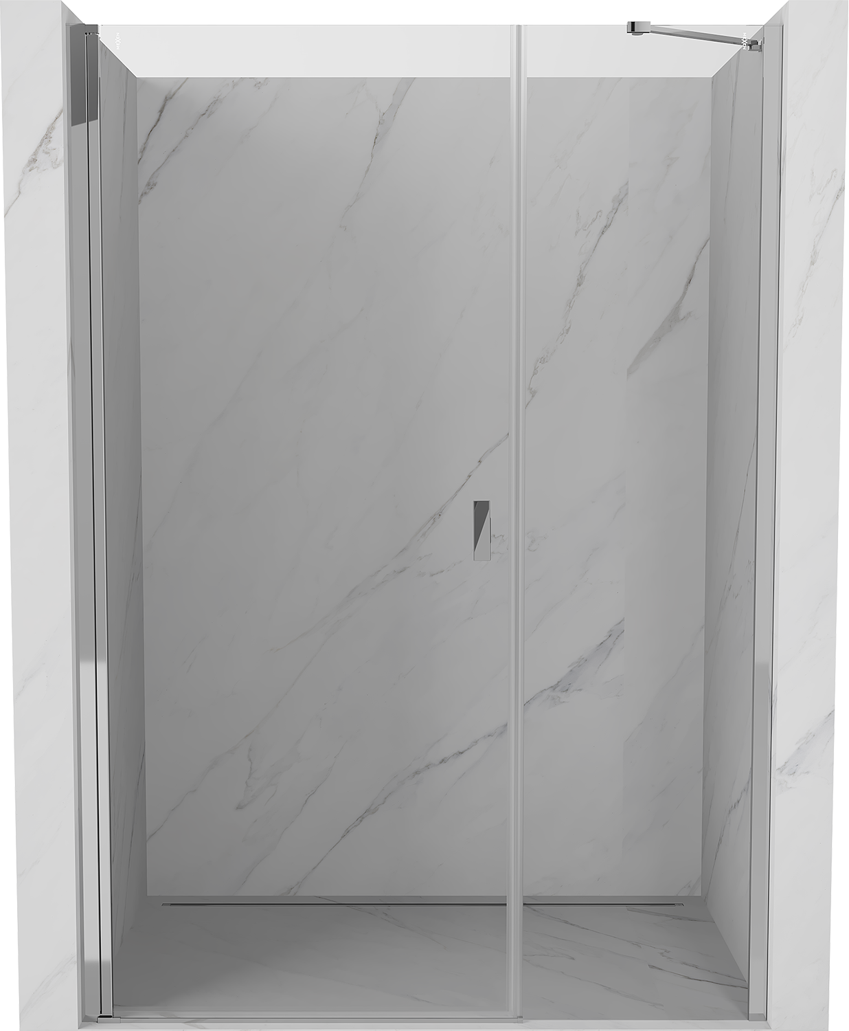 Dzięki zastosowaniu uniwersalnego systemu mocowania, drzwi prysznicowe mogą zostać zamontowane z prawej lub z lewej strony, zależnie od potrzeb. Dzięki temu możesz z łatwością zaprojektować prysznic dopasowany do przestrzeni łazienki.