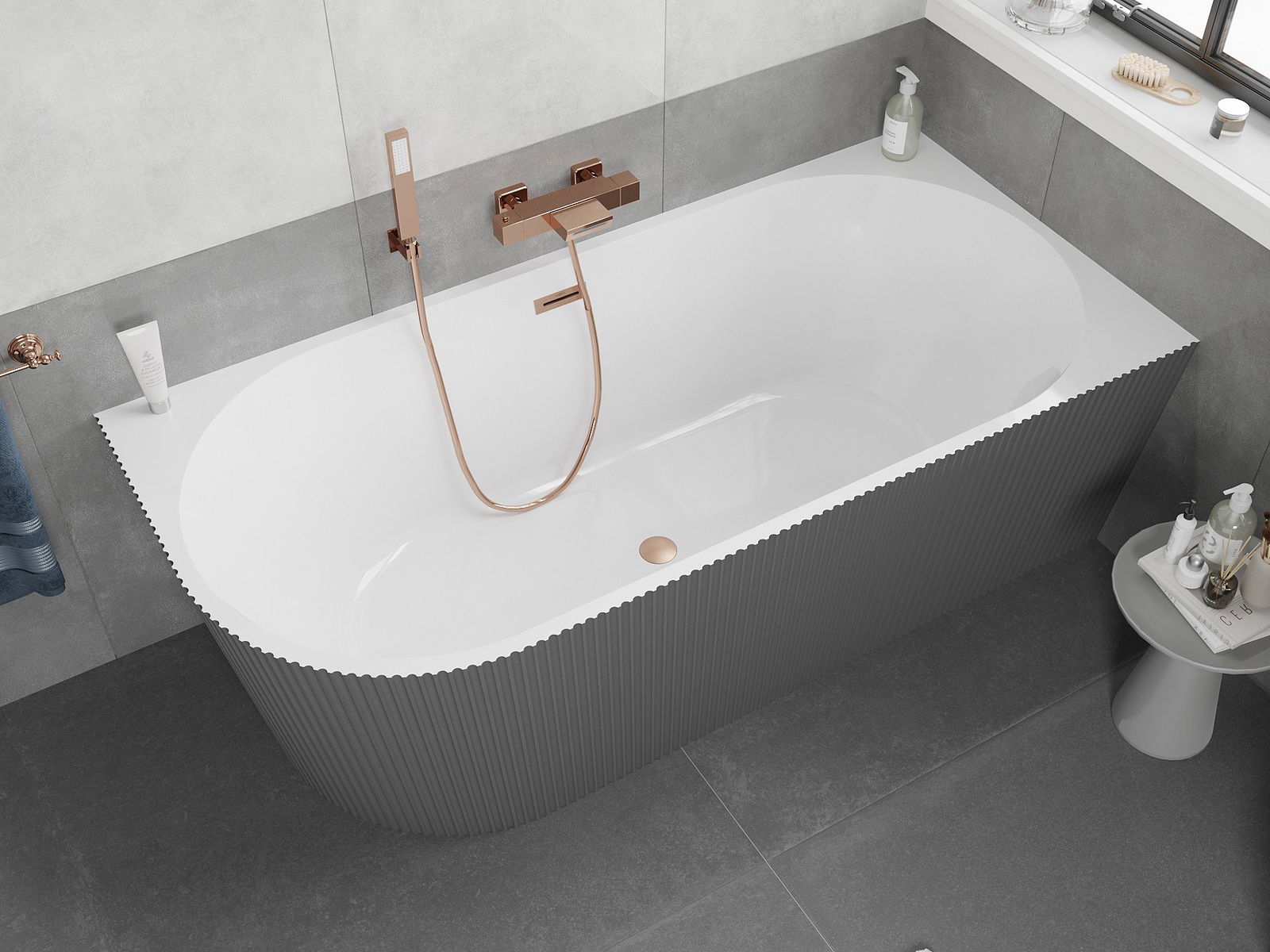 • Mexen Silo wanna wolnostojąca narożna prawa ryflowana  170 x 80 cm, biała/szara, przelew miedź szczotkowana - 52891708062P-65
