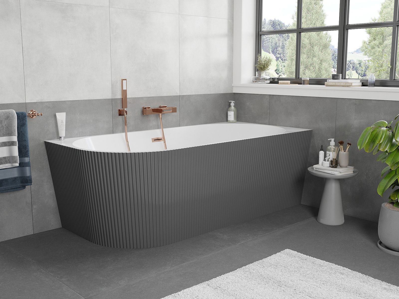 Mexen Silo wanna wolnostojąca narożna prawa ryflowana  170 x 80 cm, biała/szara, przelew miedź szczotkowana - 52891708062P-65