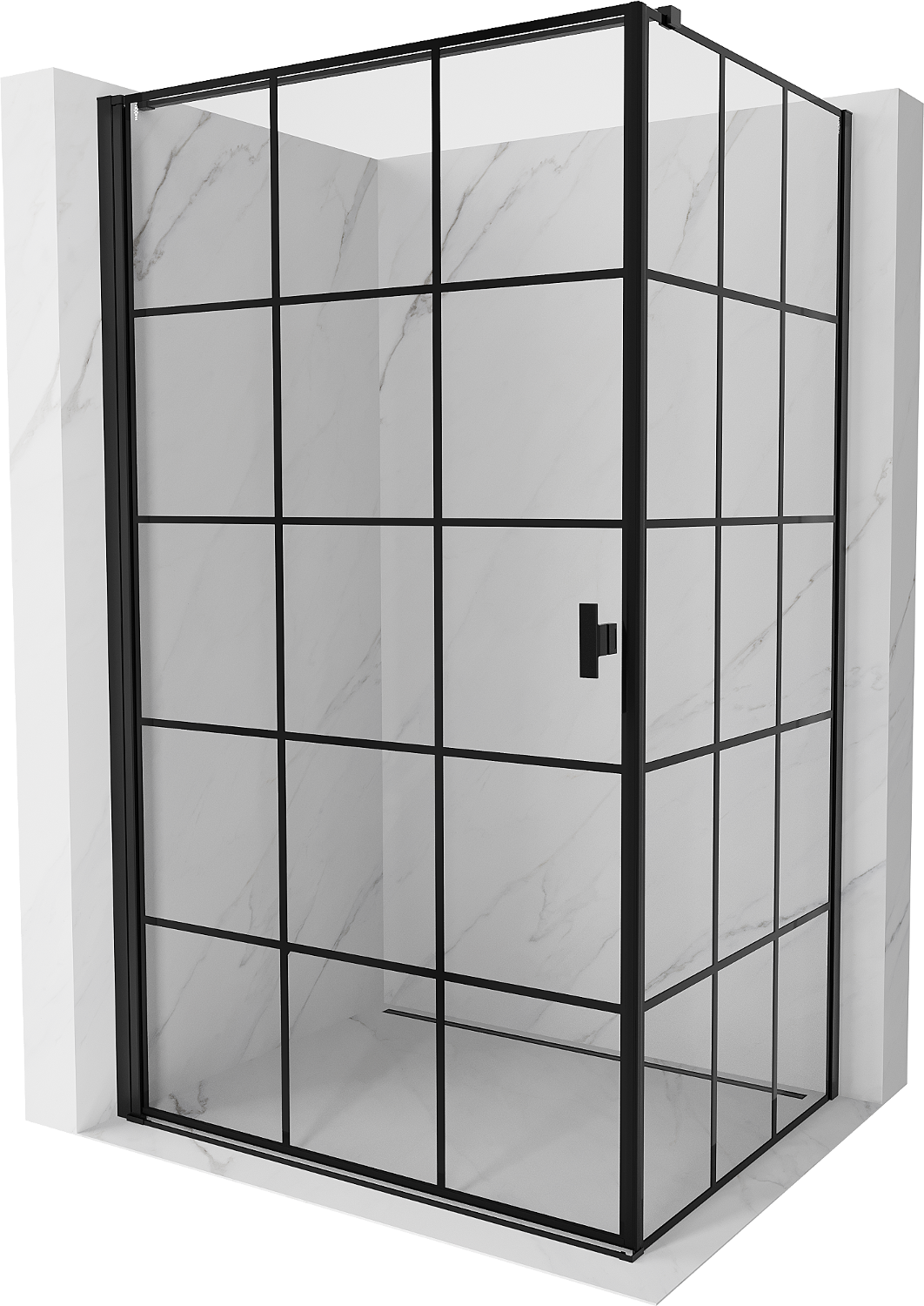 Specyfikacja produktu: Rozmiar: 100x85 cm (drzwi lewe 100 cm, ścianka 85 cm) Wysokość: 200 cm Strona montażu: Lewa Wejście: Drzwi uchylne Kolor szkła: Czarna kratka Wykończenie: Czarny Profil: Aluminiowy Wspornik: Stal nierdzewna Długość max. wspornika: 150 cm Możliwość przycięcia wspornika Rodzaj szkła: Hartowane Grubość szkła: 6 mm Powłoka ułatwiająca czyszczenie Możliwa regulacja szerokości Możliwość montażu na brodziku lub płytkach Mechanizm unoszenia i opuszczania drzwi Listwa magnetyczna oraz uszczelki elastomerowe odprowadzające wodę Aluminiowy próg uszczelniający drzwi