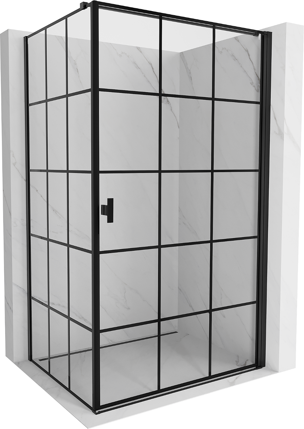 Specyfikacja produktu: Rozmiar: 80x70 cm (drzwi prawe 80 cm, ścianka 70 cm) Wysokość: 200 cm Strona montażu: Prawa Wejście: Drzwi uchylne Kolor szkła: Czarna kratka Wykończenie: Czarny Profil: Aluminiowy Wspornik: Stal nierdzewna Długość max. wspornika: 150 cm Możliwość przycięcia wspornika Rodzaj szkła: Hartowane Grubość szkła: 6 mm Powłoka ułatwiająca czyszczenie Możliwa regulacja szerokości Możliwość montażu na brodziku lub płytkach Mechanizm unoszenia i opuszczania drzwi Listwa magnetyczna oraz uszczelki elastomerowe odprowadzające wodę Aluminiowy próg uszczelniający drzwi