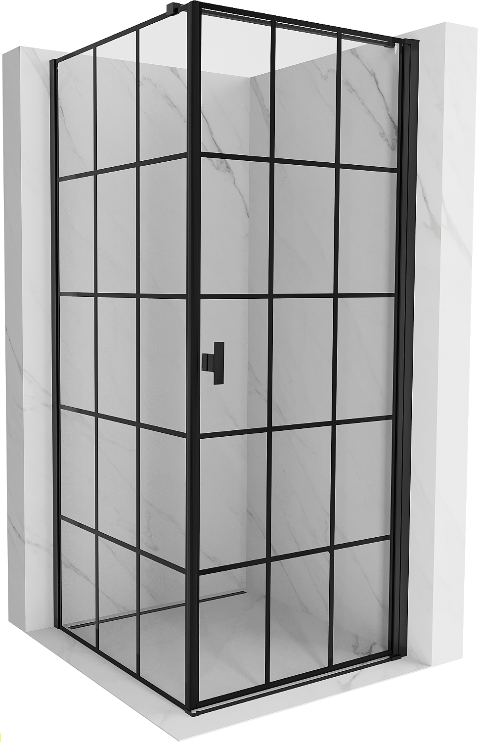 Specyfikacja produktu: Rozmiar: 80x80 cm (drzwi prawe 80 cm, ścianka 80 cm) Wysokość: 200 cm Strona montażu: Prawa Wejście: Drzwi uchylne Kolor szkła: Czarna kratka Wykończenie: Czarny Profil: Aluminiowy Wspornik: Stal nierdzewna Długość max. wspornika: 150 cm Możliwość przycięcia wspornika Rodzaj szkła: Hartowane Grubość szkła: 6 mm Powłoka ułatwiająca czyszczenie Możliwa regulacja szerokości Możliwość montażu na brodziku lub płytkach Mechanizm unoszenia i opuszczania drzwi Listwa magnetyczna oraz uszczelki elastomerowe odprowadzające wodę Aluminiowy próg uszczelniający drzwi