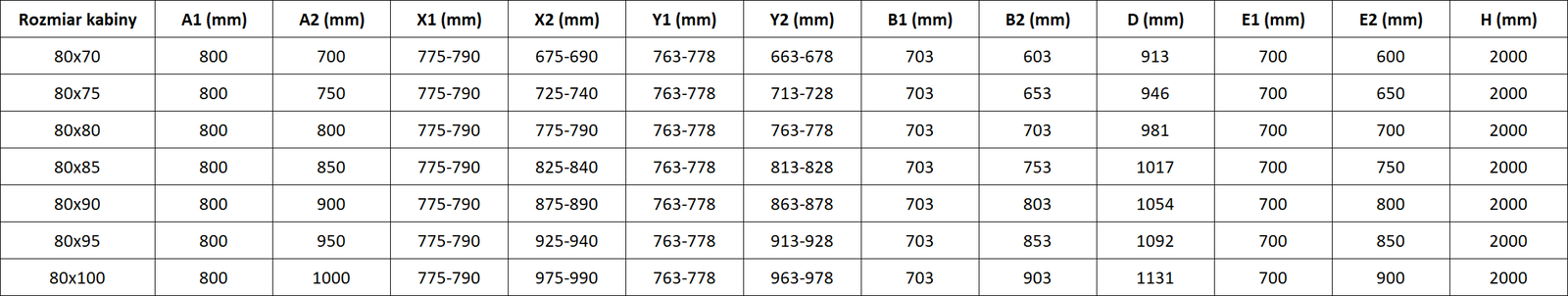 Specyfikacja produktu: Rozmiar: 80x90 cm (drzwi lewe 80 cm, drzwi prawe 90 cm) Wysokość: 200 cm Strona montażu: Uniwersalna Wejście: Drzwi uchylne Kolor szkła: Czarna kratka Wykończenie: Czarny Profil: Aluminiowy Rodzaj szkła: Hartowane Grubość szkła: 6 mm Powłoka ułatwiająca czyszczenie Możliwa regulacja szerokości Możliwość montażu na brodziku lub płytkach Mechanizm unoszenia i opuszczania drzwi Listwa magnetyczna oraz uszczelki elastomerowe odprowadzające wodę Aluminiowy próg uszczelniający drzwi