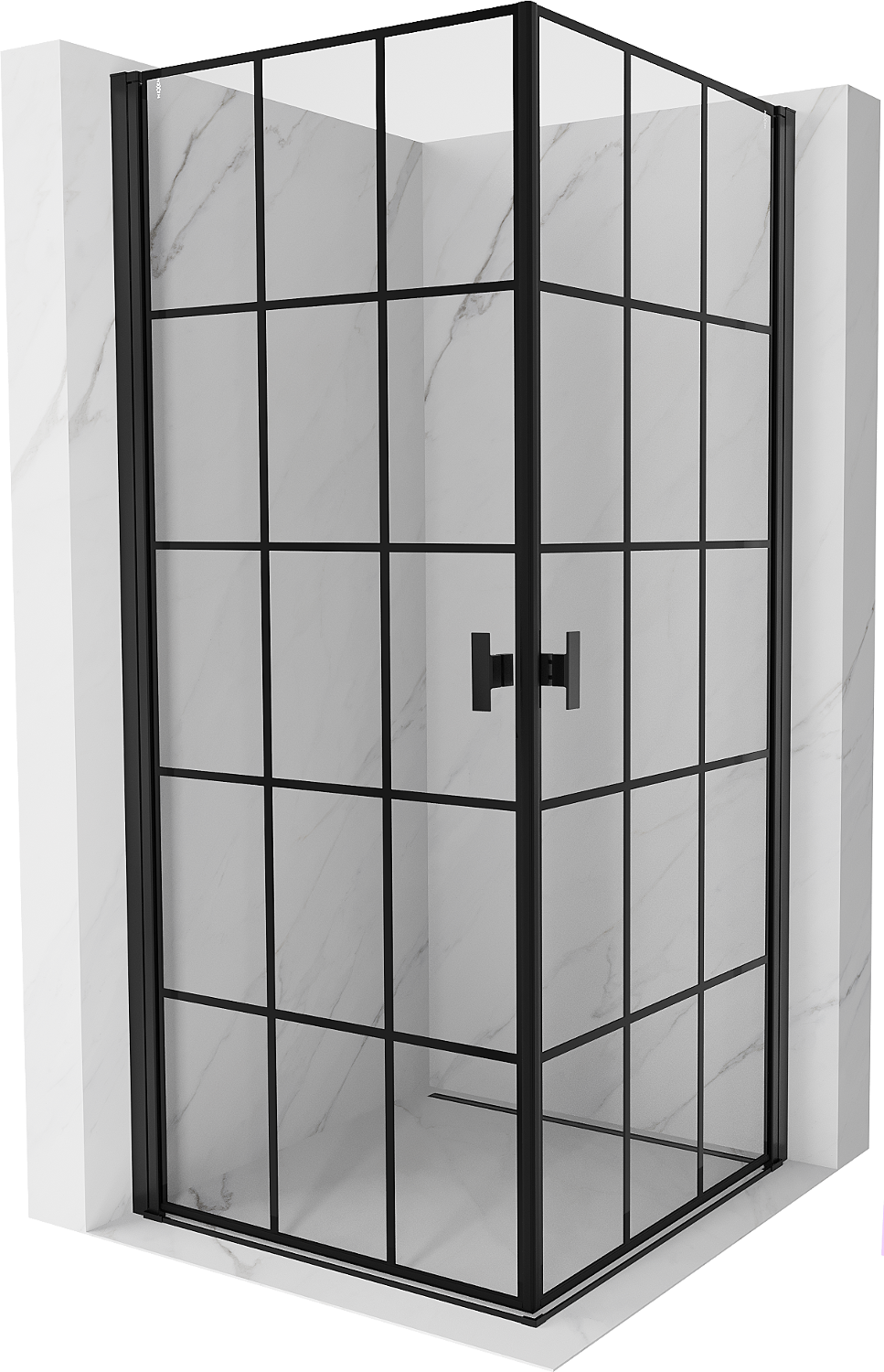 Mexen Mist-B Duo kabina prysznicowa uchylna 100 x 100 cm, czarna kratka, czarna - 8A2-100L-100P-70-77