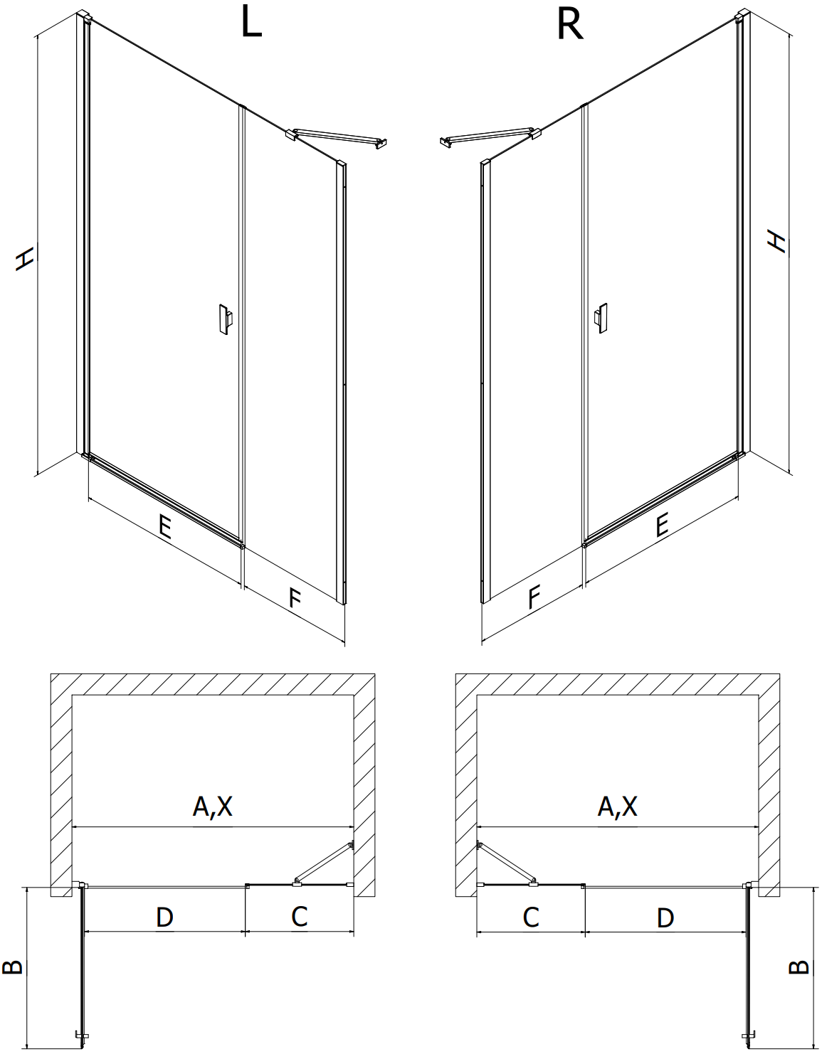 Dzięki zastosowaniu uniwersalnego systemu mocowania, drzwi prysznicowe mogą zostać zamontowane z prawej lub z lewej strony, zależnie od potrzeb. Dzięki temu możesz z łatwością zaprojektować prysznic dopasowany do przestrzeni łazienki.