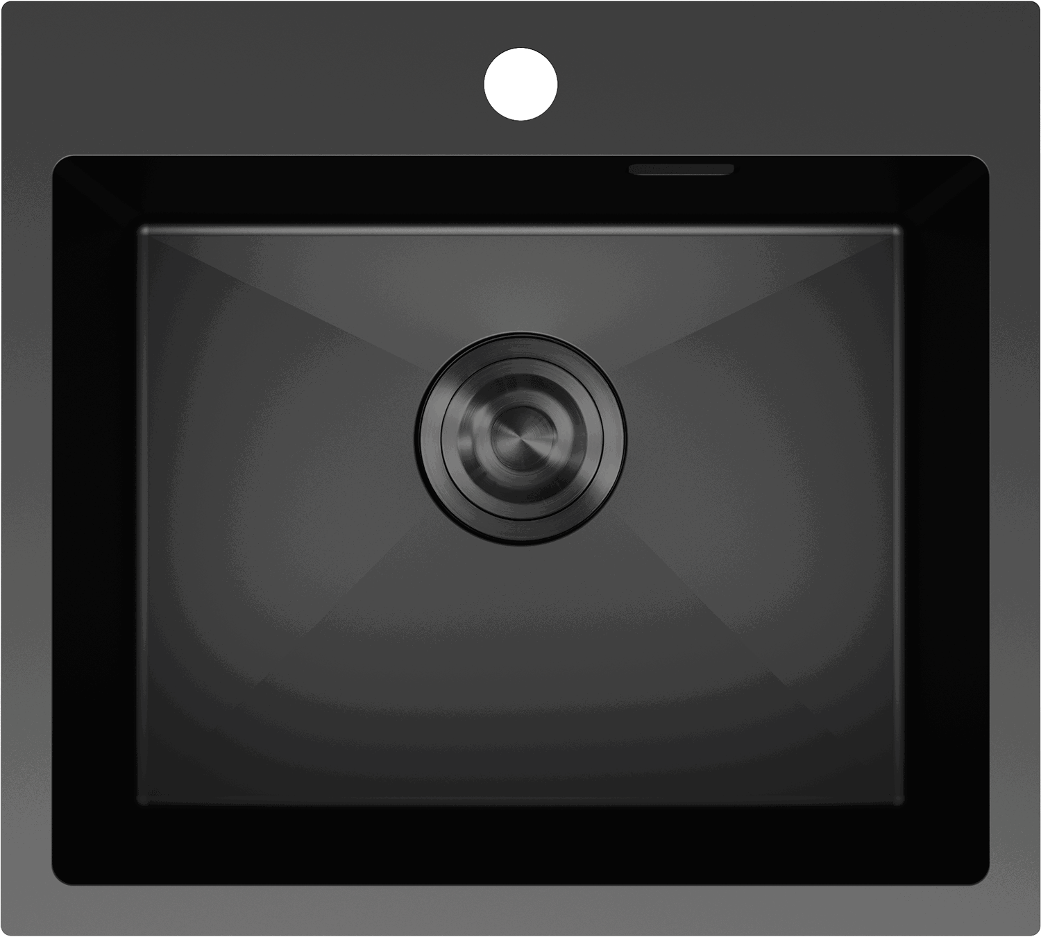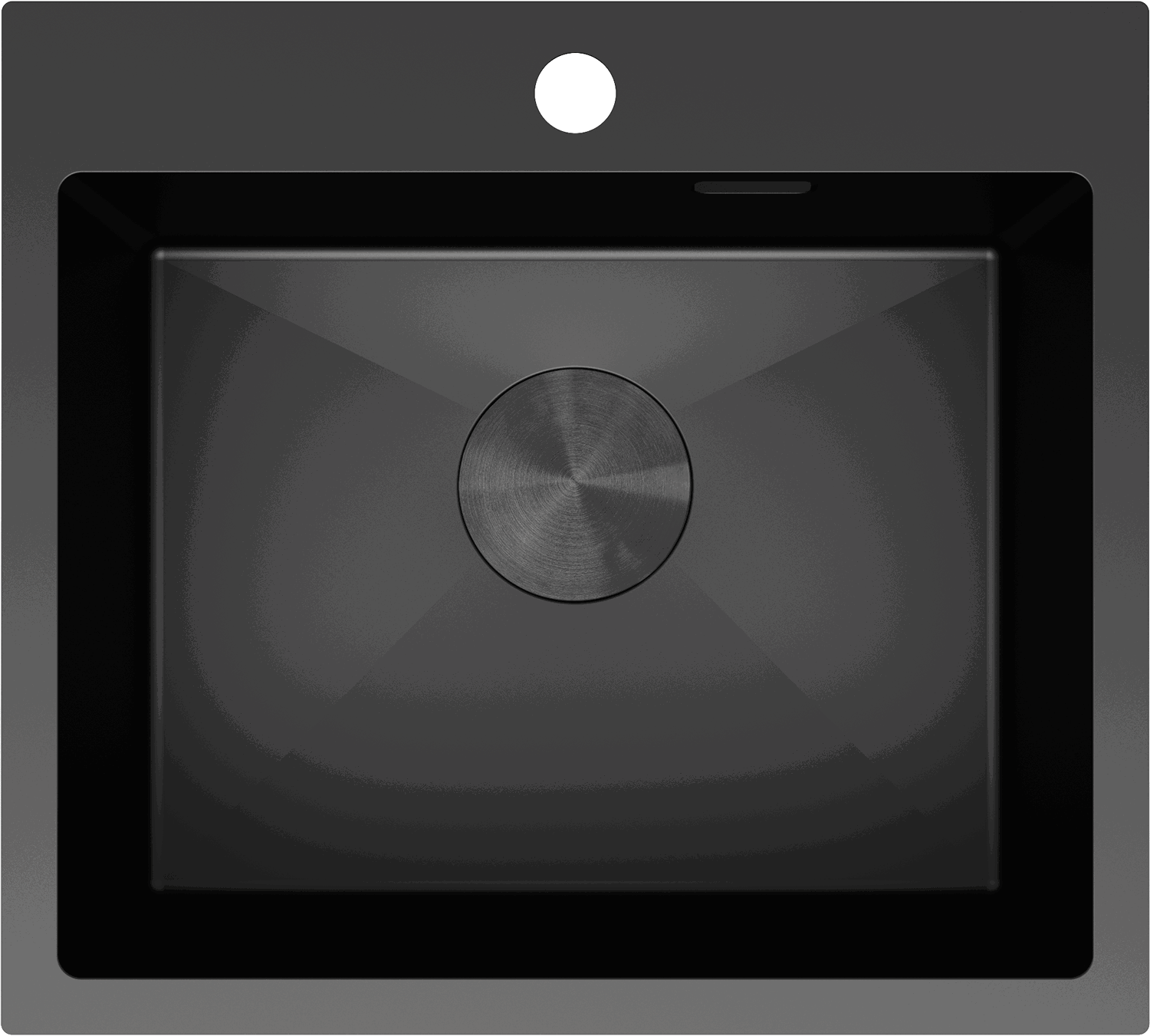 Specyfikacja produktu: Rozmiar: 500x450x200 mm Głębokość komory: 200 mm Wymiary komory: 450x350 mm Grubość stali rantu: 3 mm Grubość stali komory: 1 mm Promień zaokrąglenia narożników komory: R10 Średnica odpływu: ø92 mm Rodzaj: 1-komorowy Typ: Wpuszczany w blat Materiał: Stal nierdzewna AISI 304  Kolor: Czarny Powierzchnia: Gładka Wykończenie syfonu: Czarny Otwór przelewowy: Tak Otwór na baterie: Tak Syfon manualny w komplecie z koszyczkiem na odpady i korkiem Dodatkowa maskownica na odpływ Ukryty otwór przelewowy Maty wygłuszające zlewozmywak Wytrzymałość na uderzenia, zarysowania i przebarwienia Odporność na wysoką temperaturę i szok termiczny Powierzchnia ułatwiająca czyszczenie