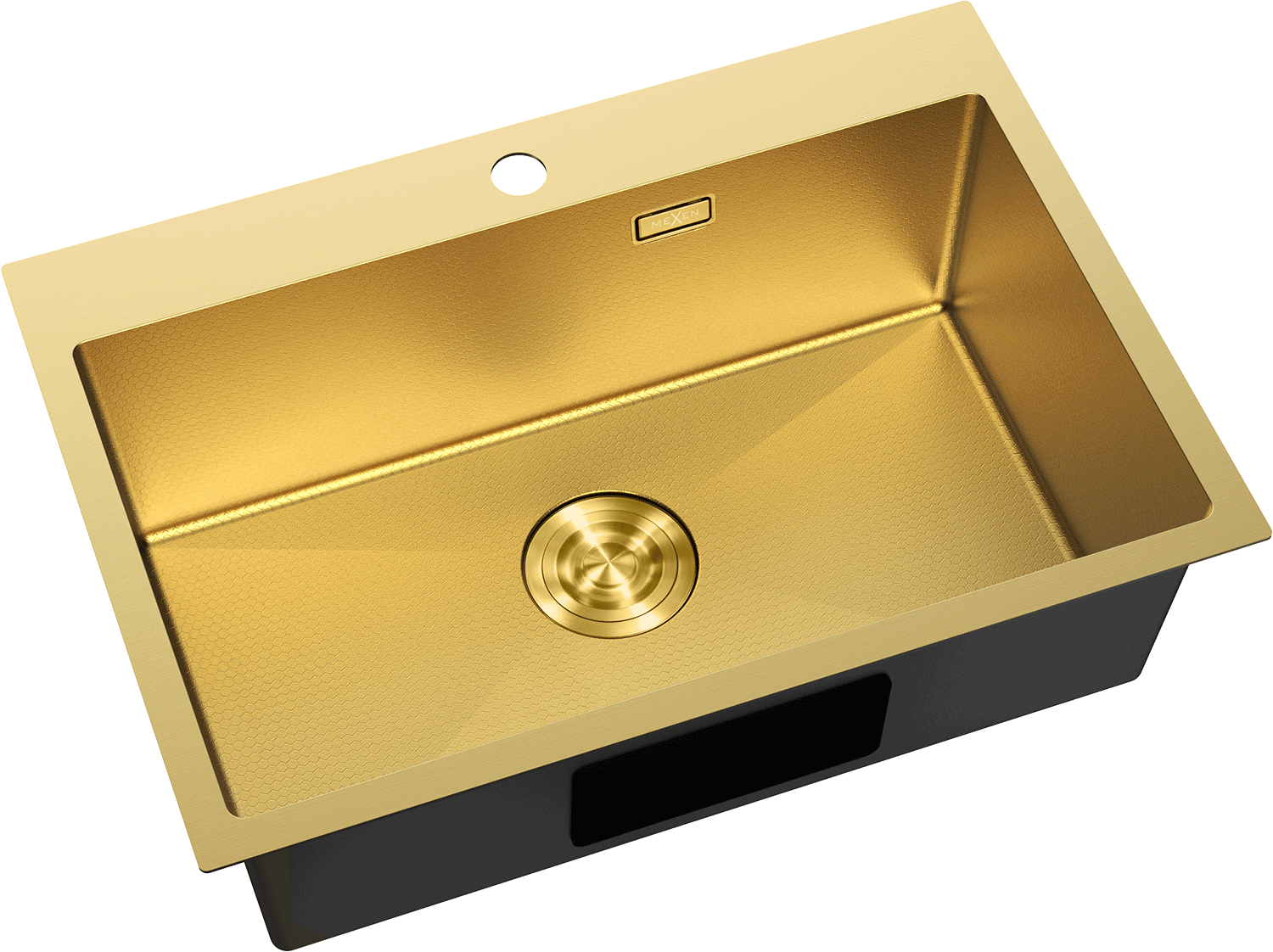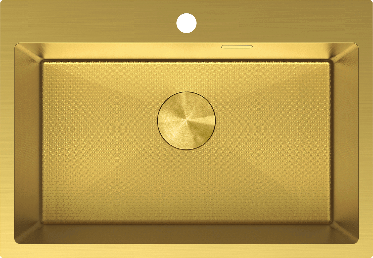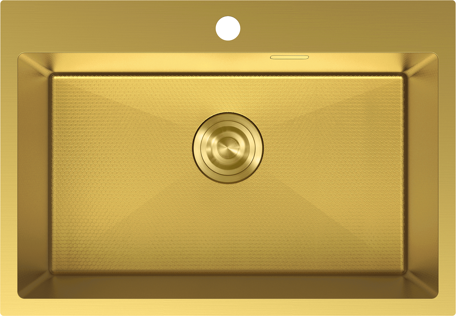 Specyfikacja produktu: Rozmiar: 650x450x200 mm Głębokość komory: 200 mm Wymiary komory: 600x350 mm Grubość stali rantu: 3 mm Grubość stali komory: 1 mm Promień zaokrąglenia narożników komory: R10 Średnica odpływu: ø92 mm Rodzaj: 1-komorowy Typ: Wpuszczany w blat Materiał: Stal nierdzewna AISI 304  Kolor: Złoty Powierzchnia: Plaster miodu Wykończenie syfonu: Złoty Otwór przelewowy: Tak Otwór na baterie: Tak Syfon manualny w komplecie z koszyczkiem na odpady i korkiem Dodatkowa maskownica na odpływ Ukryty otwór przelewowy Maty wygłuszające zlewozmywak Wytrzymałość na uderzenia, zarysowania i przebarwienia Odporność na wysoką temperaturę i szok termiczny Powierzchnia ułatwiająca czyszczenie
