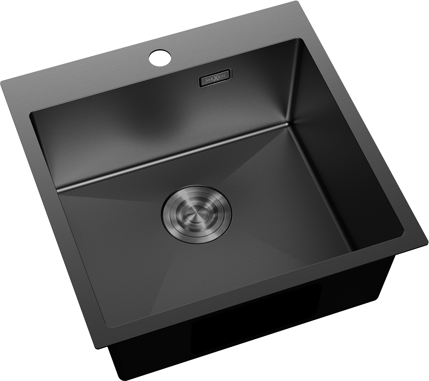 • Mexen Solix zlewozmywak stalowy 1-komorowy 500 x 500 mm, czarny - 6407501000-70
