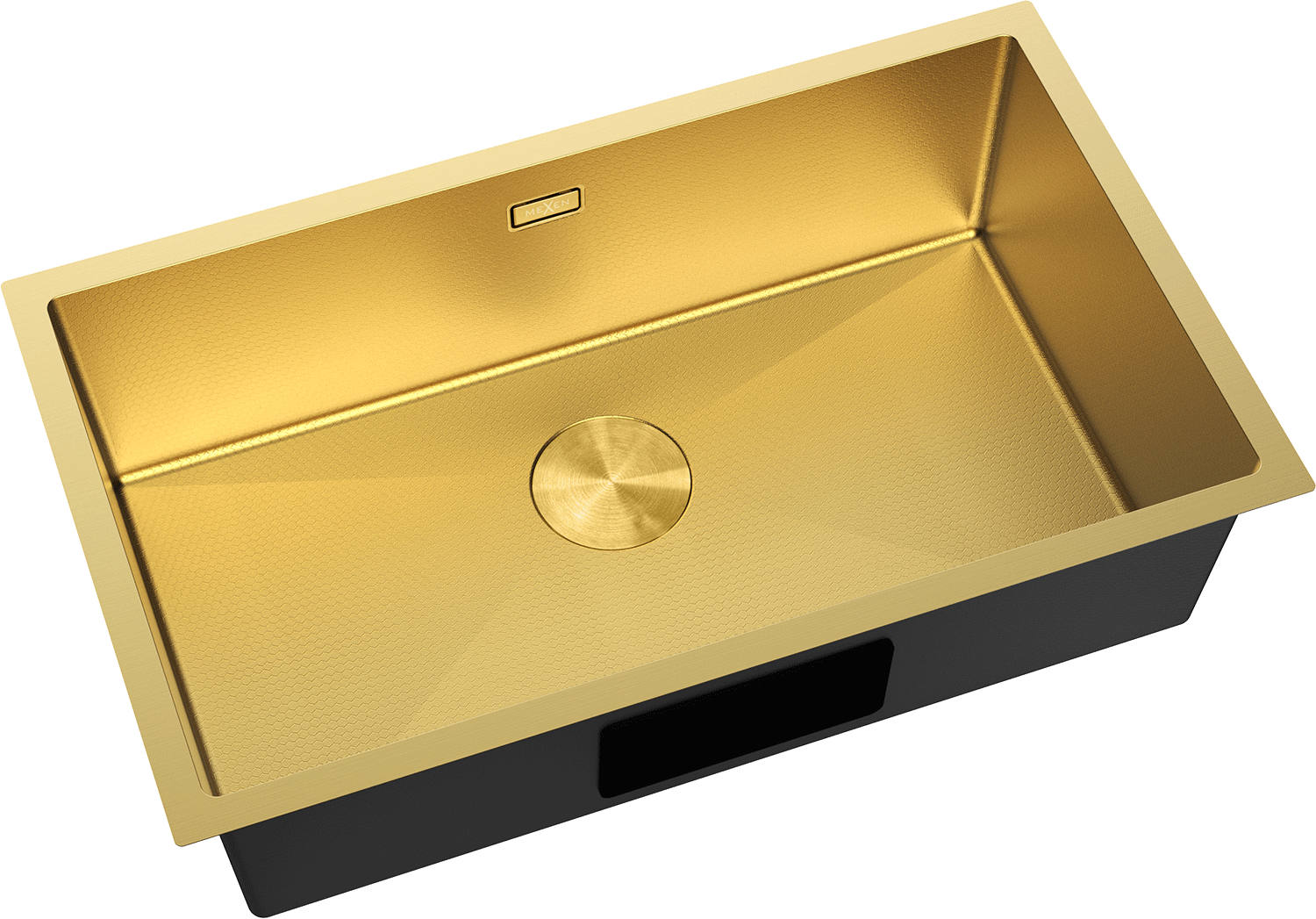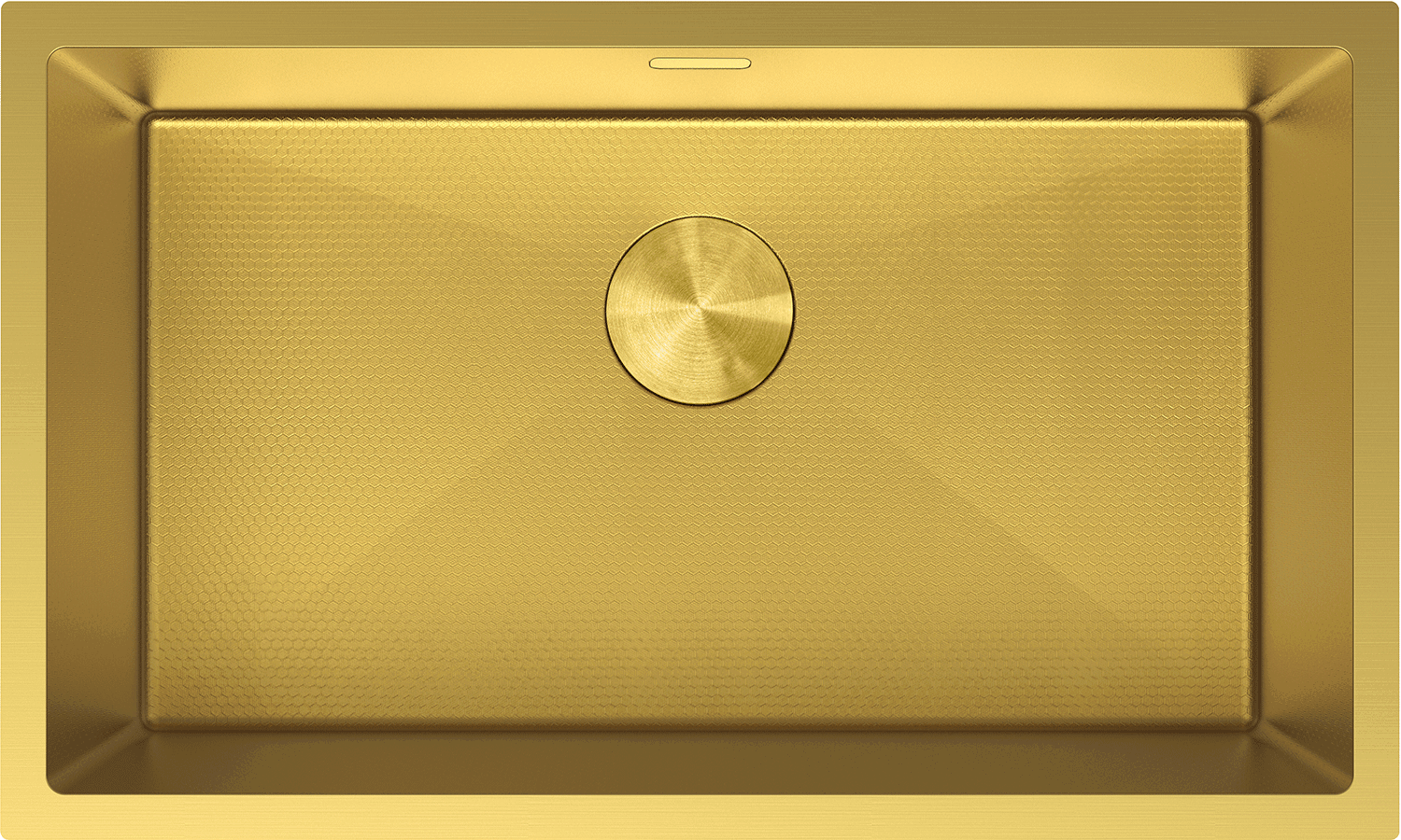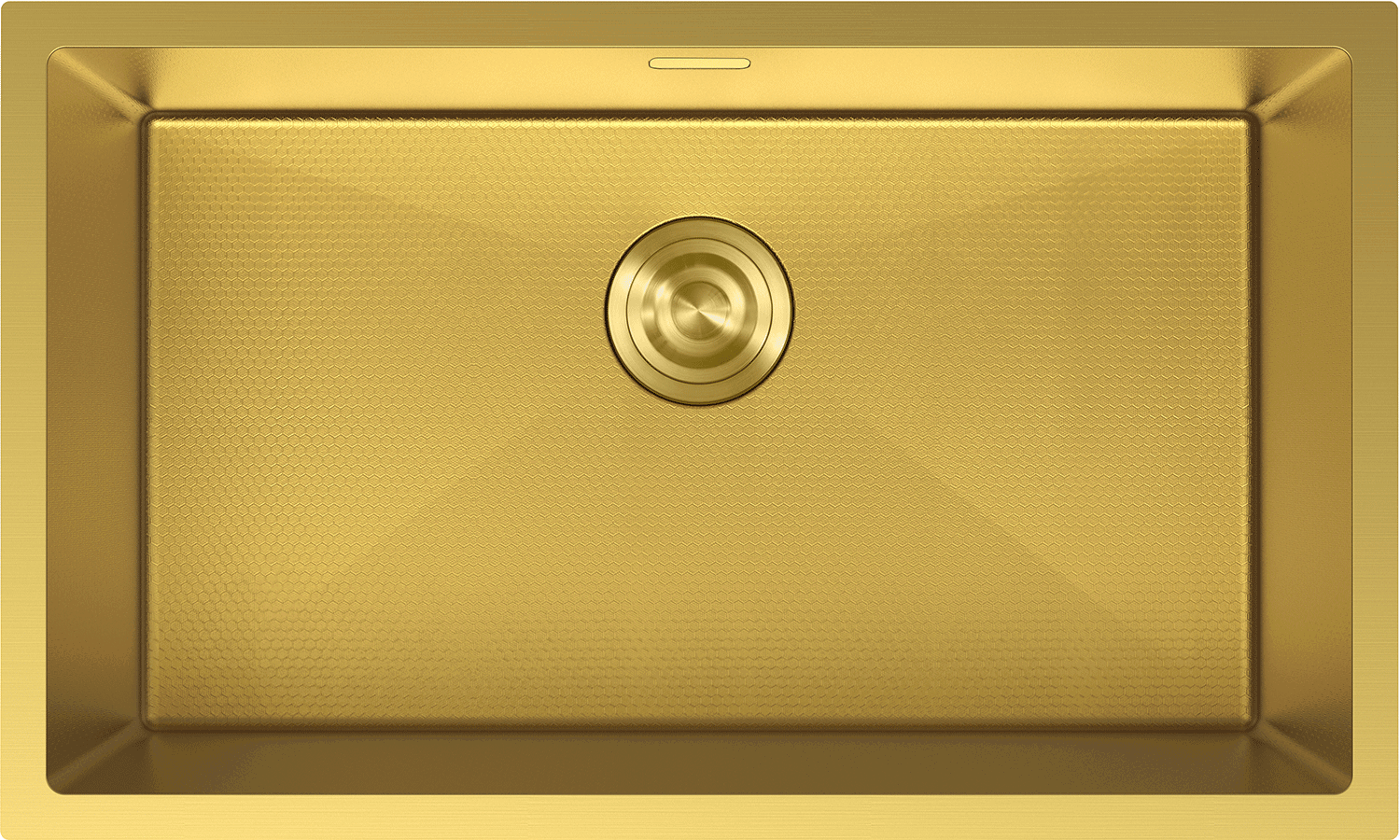 Specyfikacja produktu: Rozmiar: 750x440x200 mm Głębokość komory: 200 mm Wymiary komory: 700x400 mm Grubość stali rantu: 3 mm Grubość stali komory: 1 mm Promień zaokrąglenia narożników komory: R10 Średnica odpływu: ø92 mm Rodzaj: 1-komorowy Typ: Wpuszczany w blat, Podblatowy Materiał: Stal nierdzewna AISI 304  Kolor: Złoty Powierzchnia: Plaster miodu  Wykończenie syfonu: Złoty Otwór przelewowy: Tak Otwór na baterie: Nie Syfon manualny w komplecie z koszyczkiem na odpady i korkiem Dodatkowa maskownica na odpływ Ukryty otwór przelewowy Maty wygłuszające zlewozmywak Wytrzymałość na uderzenia, zarysowania i przebarwienia Odporność na wysoką temperaturę i szok termiczny Powierzchnia ułatwiająca czyszczenie