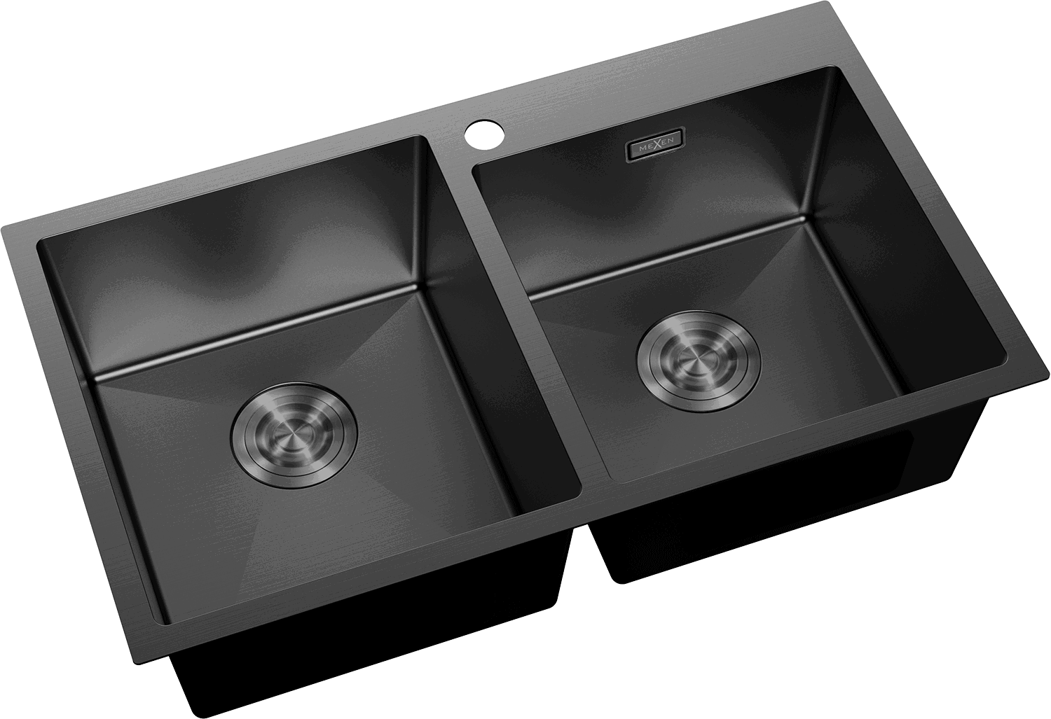Mexen Xorin zlewozmywak stalowy 2-komorowy 780 x 450 mm, czarny - 6441782000-70