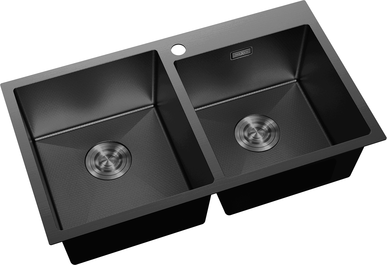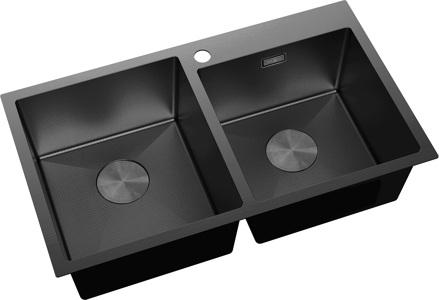 Mexen Xorin zlewozmywak stalowy 2-komorowy 780 x 450 mm, czarny HC - 6441782000-70HC
