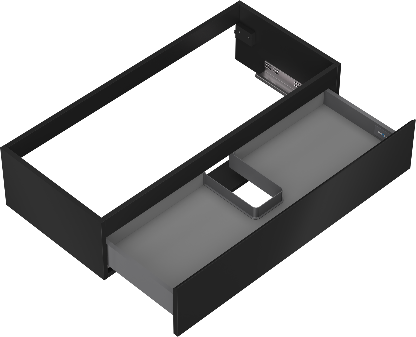 Wycięcie w szufladzie jest zaprojektowane w taki sposób, aby pomieścić syfon, który jest niezbędny w instalacjach umywalkowych. Dzięki temu mebel może być zamontowany w pełni funkcjonalnie, bez konieczności rezygnowania z przestrzeni w szufladzie na rzecz instalacji.