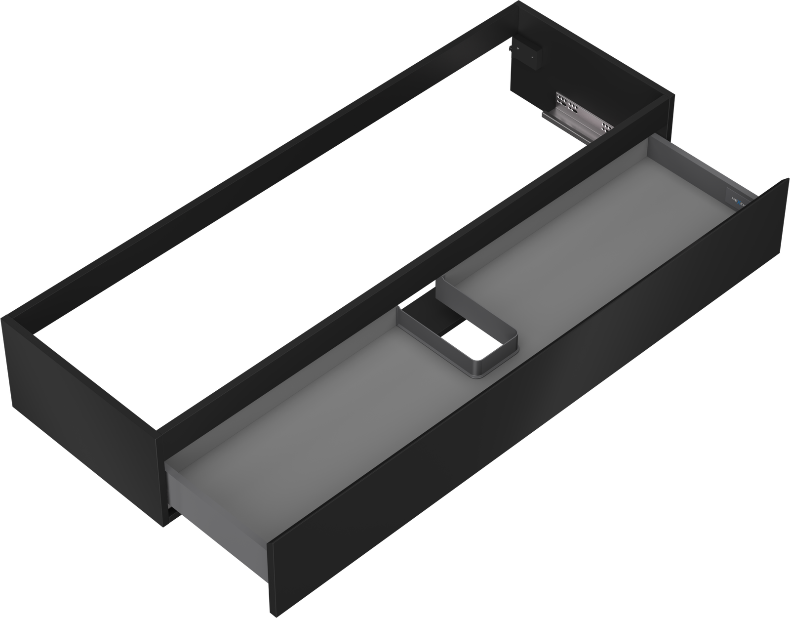 Wycięcie w szufladzie jest zaprojektowane w taki sposób, aby pomieścić syfon, który jest niezbędny w instalacjach umywalkowych. Dzięki temu mebel może być zamontowany w pełni funkcjonalnie, bez konieczności rezygnowania z przestrzeni w szufladzie na rzecz instalacji.