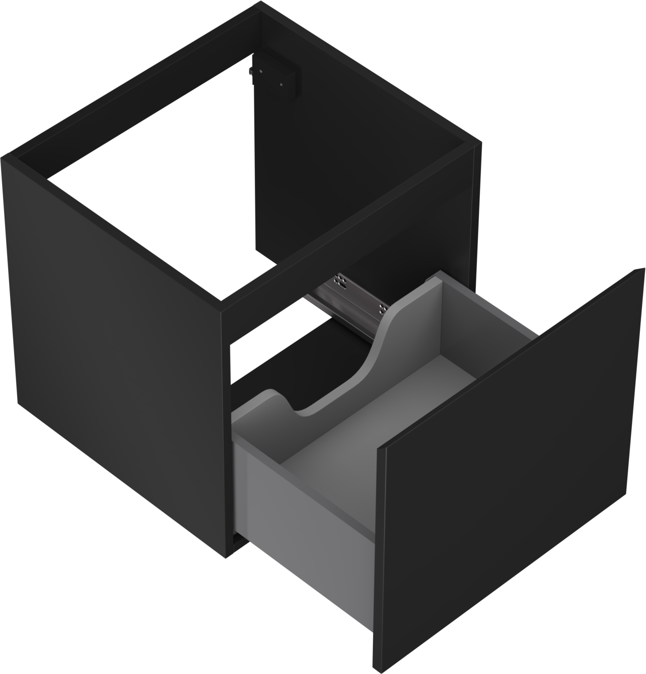 Wycięcie w szufladzie jest zaprojektowane w taki sposób, aby pomieścić syfon, który jest niezbędny w instalacjach umywalkowych. Dzięki temu mebel może być zamontowany w pełni funkcjonalnie, bez konieczności rezygnowania z przestrzeni w szufladzie na rzecz instalacji.
