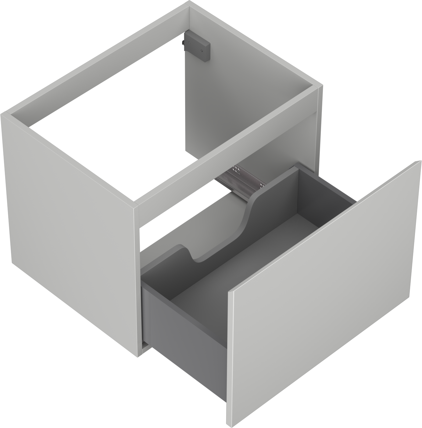 Wycięcie w szufladzie jest zaprojektowane w taki sposób, aby pomieścić syfon, który jest niezbędny w instalacjach umywalkowych. Dzięki temu mebel może być zamontowany w pełni funkcjonalnie, bez konieczności rezygnowania z przestrzeni w szufladzie na rzecz instalacji.