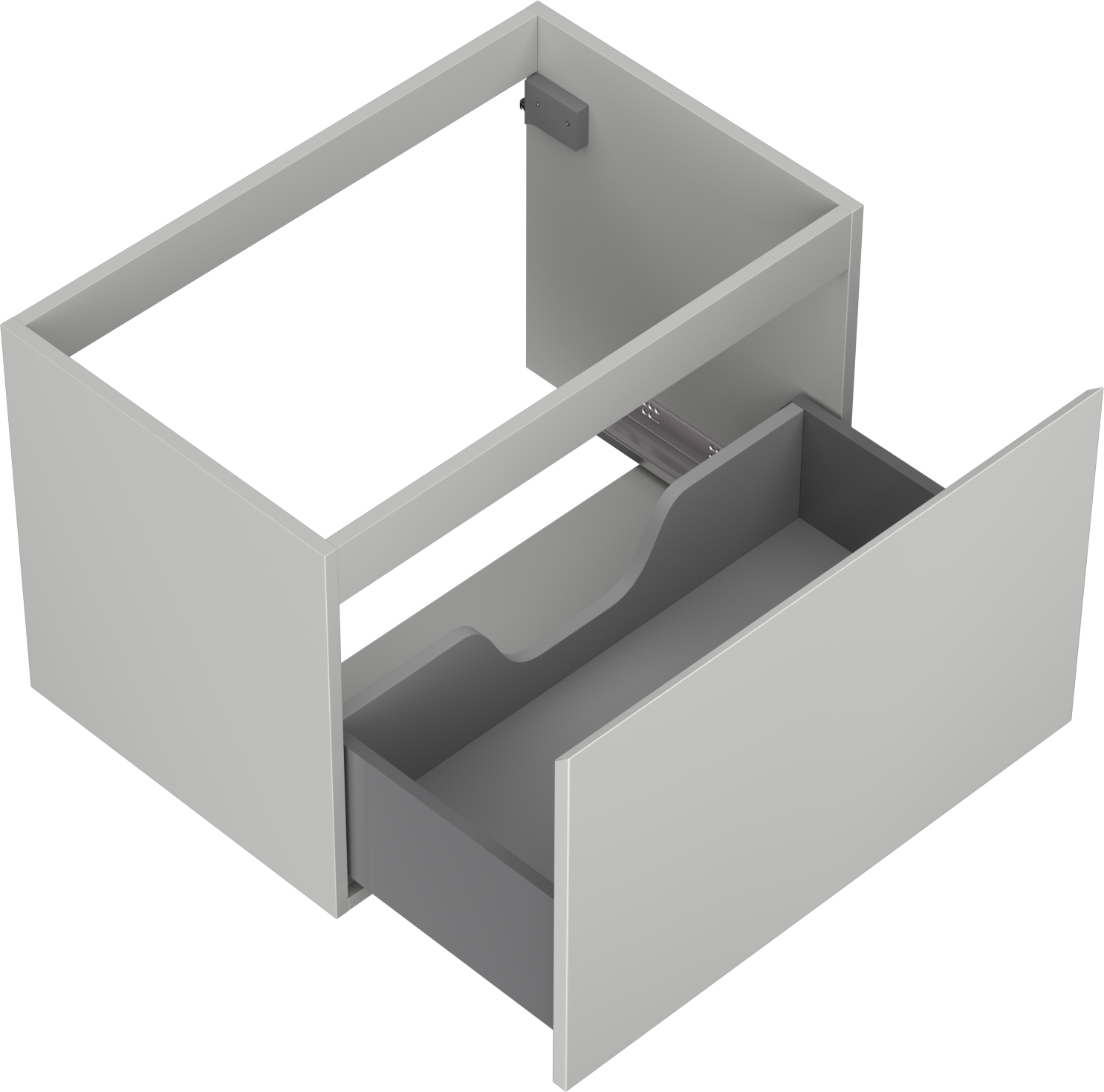 Wycięcie w szufladzie jest zaprojektowane w taki sposób, aby pomieścić syfon, który jest niezbędny w instalacjach umywalkowych. Dzięki temu mebel może być zamontowany w pełni funkcjonalnie, bez konieczności rezygnowania z przestrzeni w szufladzie na rzecz instalacji.