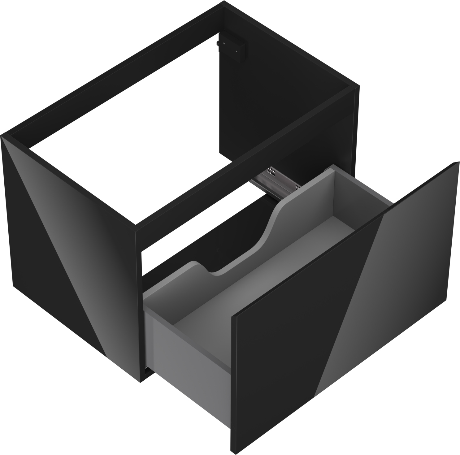 Wycięcie w szufladzie jest zaprojektowane w taki sposób, aby pomieścić syfon, który jest niezbędny w instalacjach umywalkowych. Dzięki temu mebel może być zamontowany w pełni funkcjonalnie, bez konieczności rezygnowania z przestrzeni w szufladzie na rzecz instalacji.