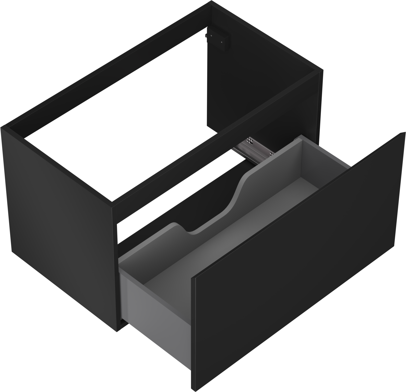 Wycięcie w szufladzie jest zaprojektowane w taki sposób, aby pomieścić syfon, który jest niezbędny w instalacjach umywalkowych. Dzięki temu mebel może być zamontowany w pełni funkcjonalnie, bez konieczności rezygnowania z przestrzeni w szufladzie na rzecz instalacji.