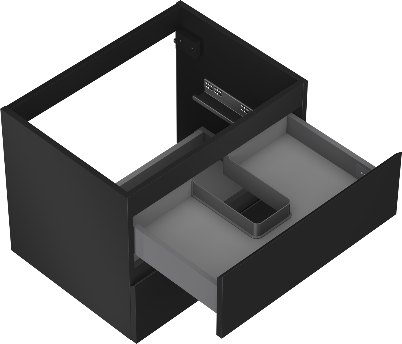 Wycięcie w szufladzie jest zaprojektowane w taki sposób, aby pomieścić syfon, który jest niezbędny w instalacjach umywalkowych. Dzięki temu mebel może być zamontowany w pełni funkcjonalnie, bez konieczności rezygnowania z przestrzeni w szufladzie na rzecz instalacji.