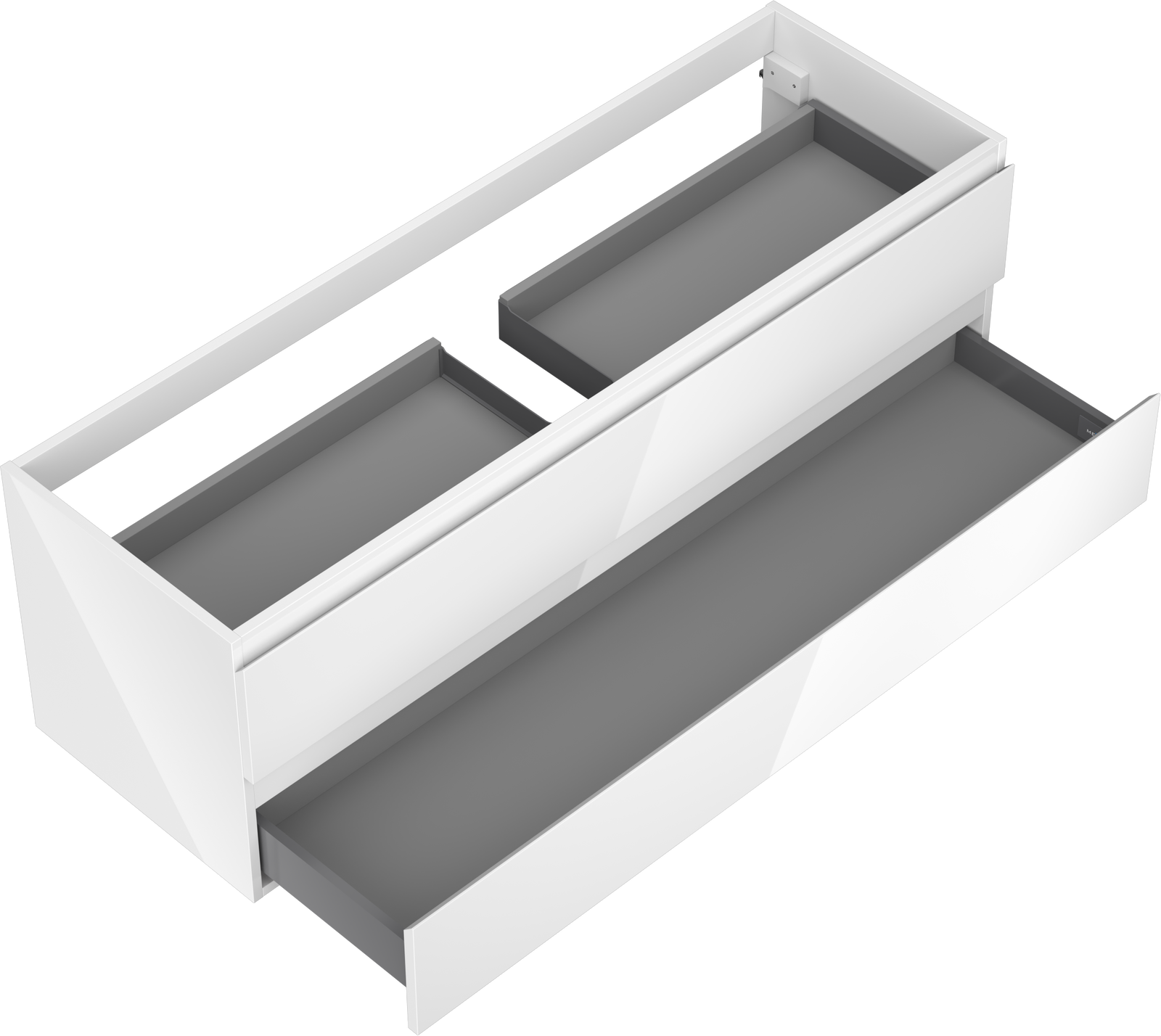 Wycięcie w szufladzie jest zaprojektowane w taki sposób, aby pomieścić syfon, który jest niezbędny w instalacjach umywalkowych. Dzięki temu mebel może być zamontowany w pełni funkcjonalnie, bez konieczności rezygnowania z przestrzeni w szufladzie na rzecz instalacji.