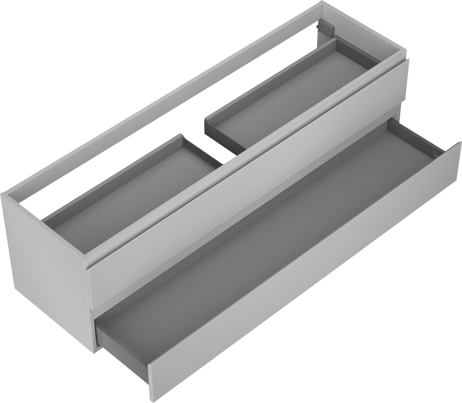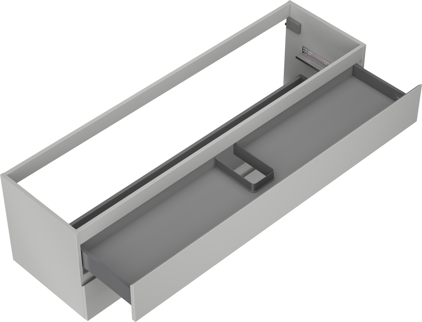 Wycięcie w szufladzie jest zaprojektowane w taki sposób, aby pomieścić syfon, który jest niezbędny w instalacjach umywalkowych. Dzięki temu mebel może być zamontowany w pełni funkcjonalnie, bez konieczności rezygnowania z przestrzeni w szufladzie na rzecz instalacji.