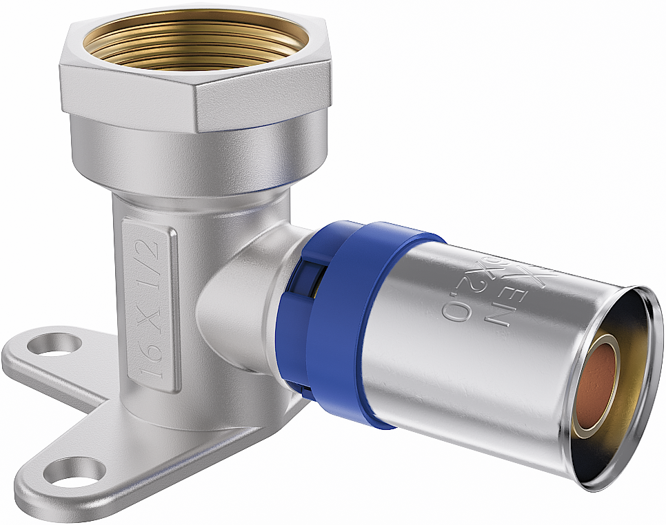 Mexen PEX-P kolano zaciskowe naścienne z łapą, zaprasowywane PEX 16 x 1/2 GW - W97128-1612F-00