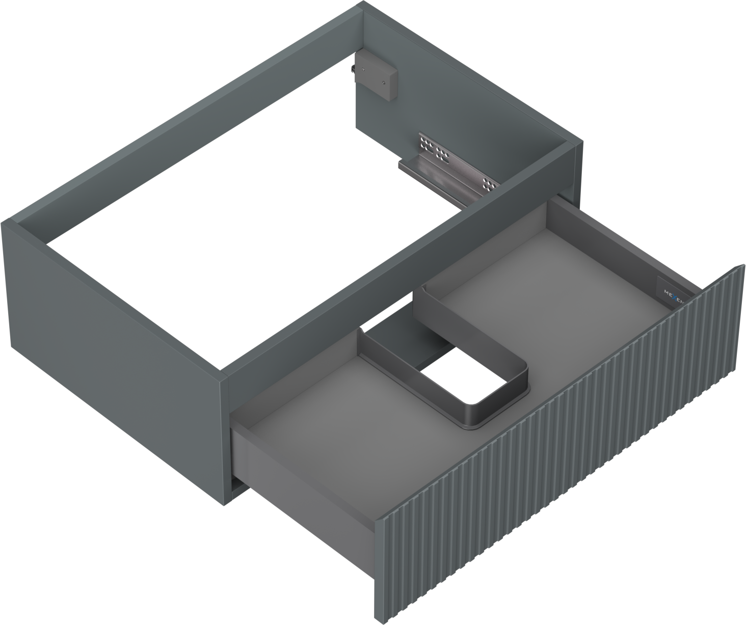Wycięcie w szufladzie jest zaprojektowane w taki sposób, aby pomieścić syfon, który jest niezbędny w instalacjach umywalkowych. Dzięki temu mebel może być zamontowany w pełni funkcjonalnie, bez konieczności rezygnowania z przestrzeni w szufladzie na rzecz instalacji.
