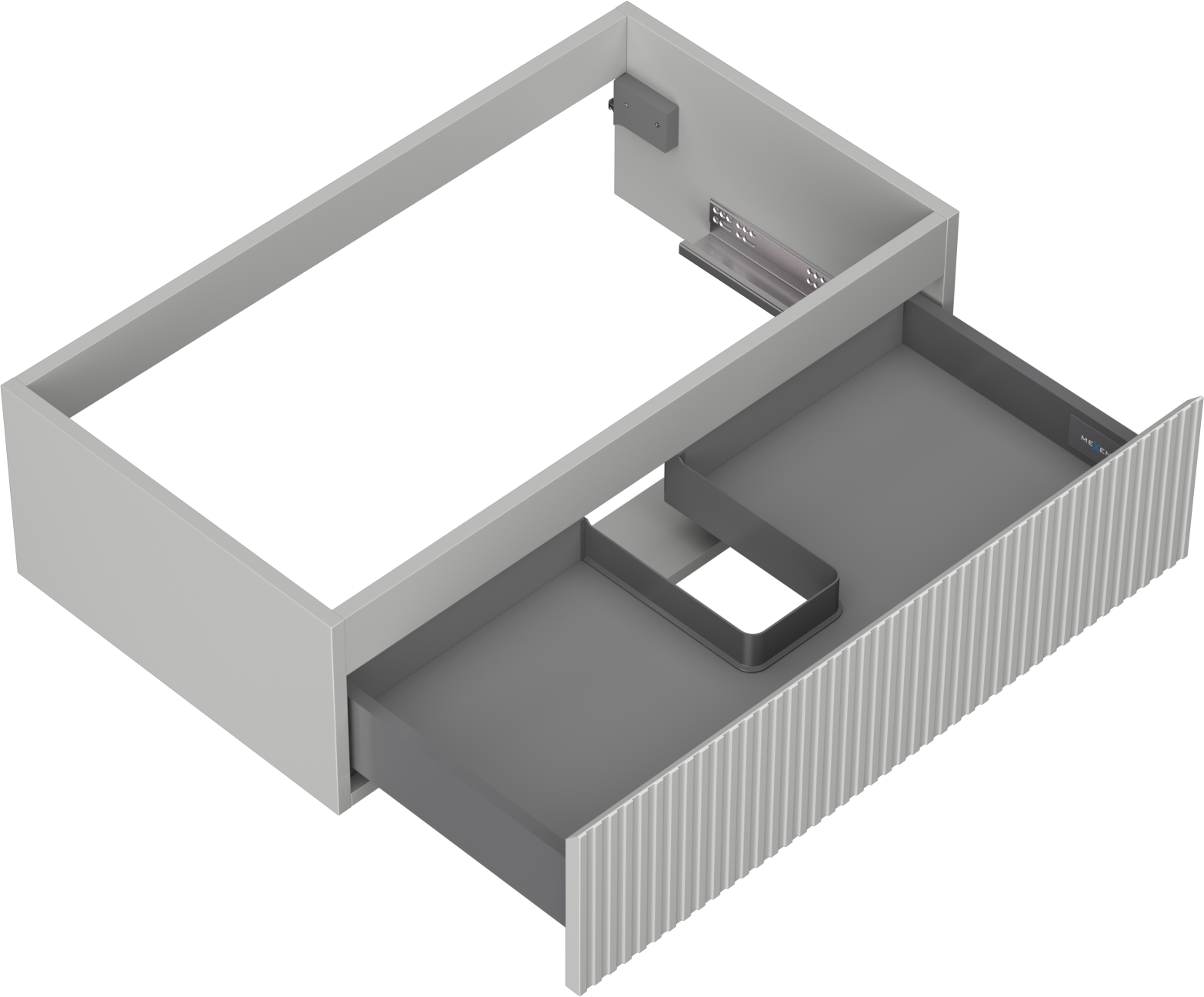 Wycięcie w szufladzie jest zaprojektowane w taki sposób, aby pomieścić syfon, który jest niezbędny w instalacjach umywalkowych. Dzięki temu mebel może być zamontowany w pełni funkcjonalnie, bez konieczności rezygnowania z przestrzeni w szufladzie na rzecz instalacji.