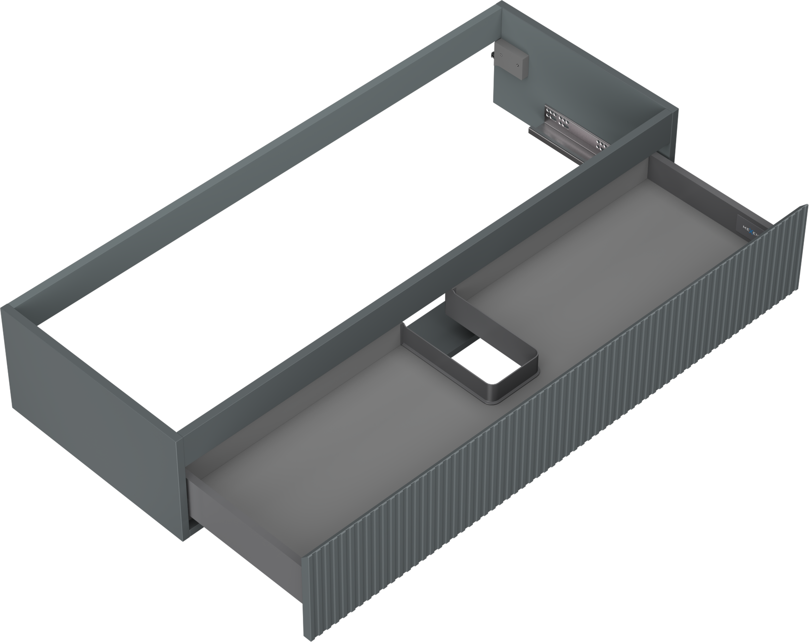 Wycięcie w szufladzie jest zaprojektowane w taki sposób, aby pomieścić syfon, który jest niezbędny w instalacjach umywalkowych. Dzięki temu mebel może być zamontowany w pełni funkcjonalnie, bez konieczności rezygnowania z przestrzeni w szufladzie na rzecz instalacji.