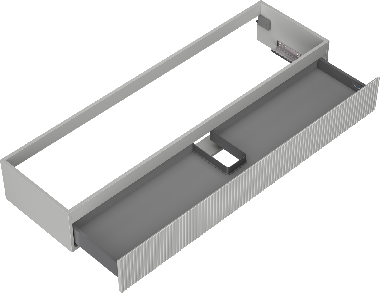 Wycięcie w szufladzie jest zaprojektowane w taki sposób, aby pomieścić syfon, który jest niezbędny w instalacjach umywalkowych. Dzięki temu mebel może być zamontowany w pełni funkcjonalnie, bez konieczności rezygnowania z przestrzeni w szufladzie na rzecz instalacji.