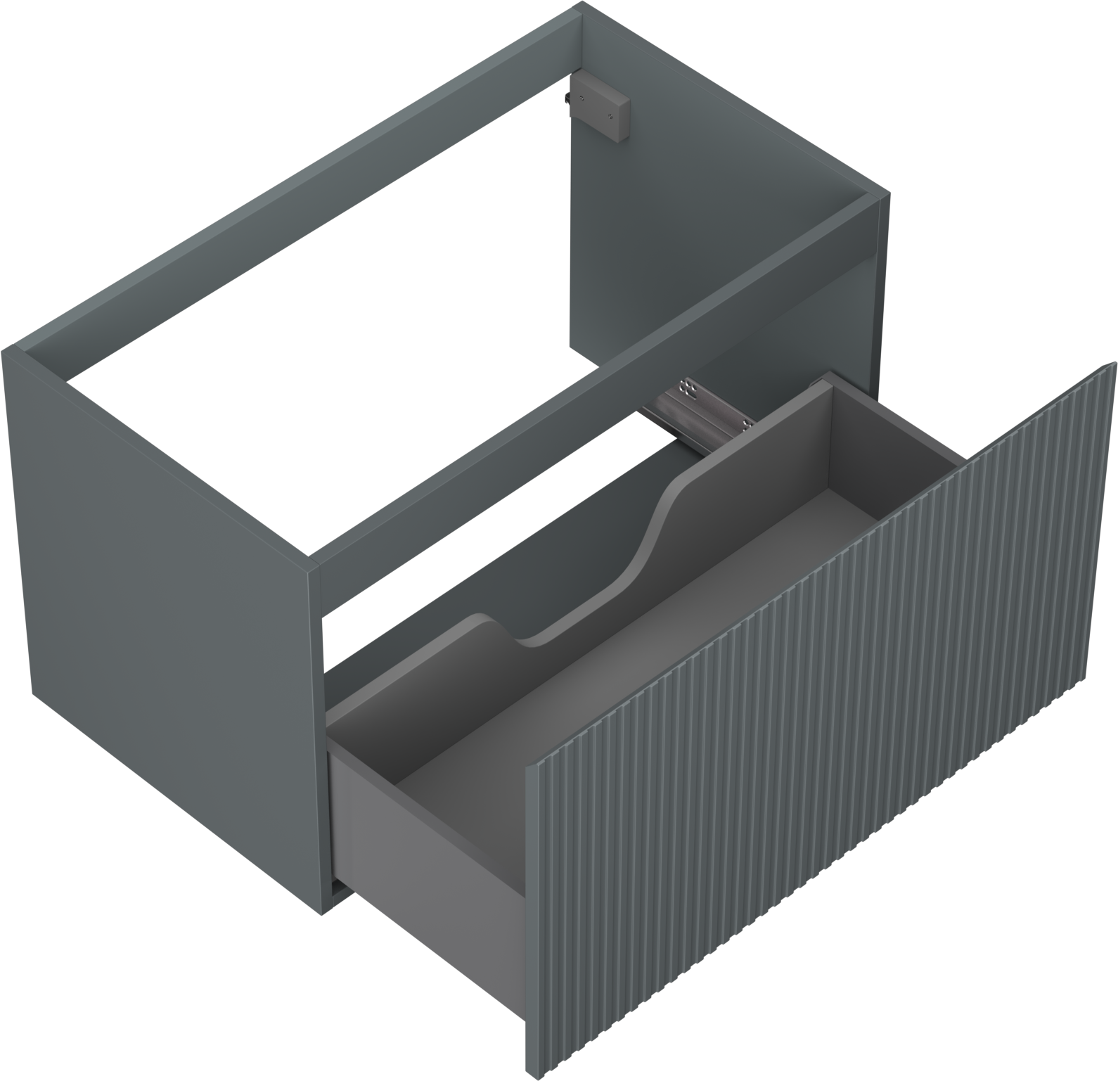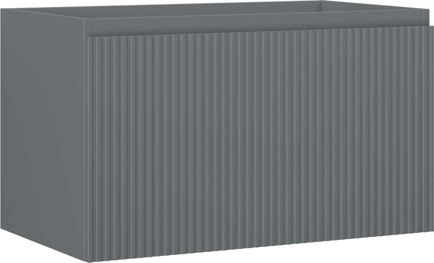 Specyfikacja produktu: Szerokość: 80 cm Wysokość: 47 cm Głębokość: 46 cm Kolor korpus: Grafit mat Materiał korpus: Płyta lakierowana Kolor front: Grafit mat Materiał front: Płyta MDF lakierowana Struktura frontu: Ryflowana Ilość szuflad: 1 Przestronna szuflada z funkcją cichego domyku Pełny wysuw ułatwiający dostęp do zawartości szuflad Powierzchnia odporna na promienie UV Do kompletowania z blatem lub umywalką Otis, Vela Produkt zmontowany