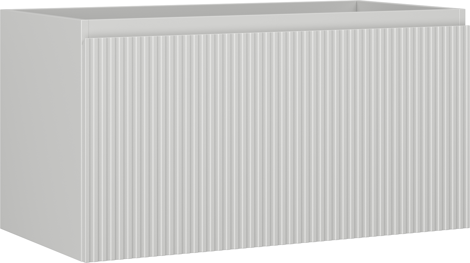 Specyfikacja produktu: Szerokość: 90 cm Wysokość: 47 cm Głębokość: 46 cm Kolor korpus: Szary mat Materiał korpus: Płyta lakierowana Kolor front: Szary mat Materiał front: Płyta MDF lakierowana Struktura frontu: Ryflowana Ilość szuflad: 1 Przestronna szuflada z funkcją cichego domyku Pełny wysuw ułatwiający dostęp do zawartości szuflad Powierzchnia odporna na promienie UV Do kompletowania z blatem lub umywalką Otis, Vela Produkt zmontowany