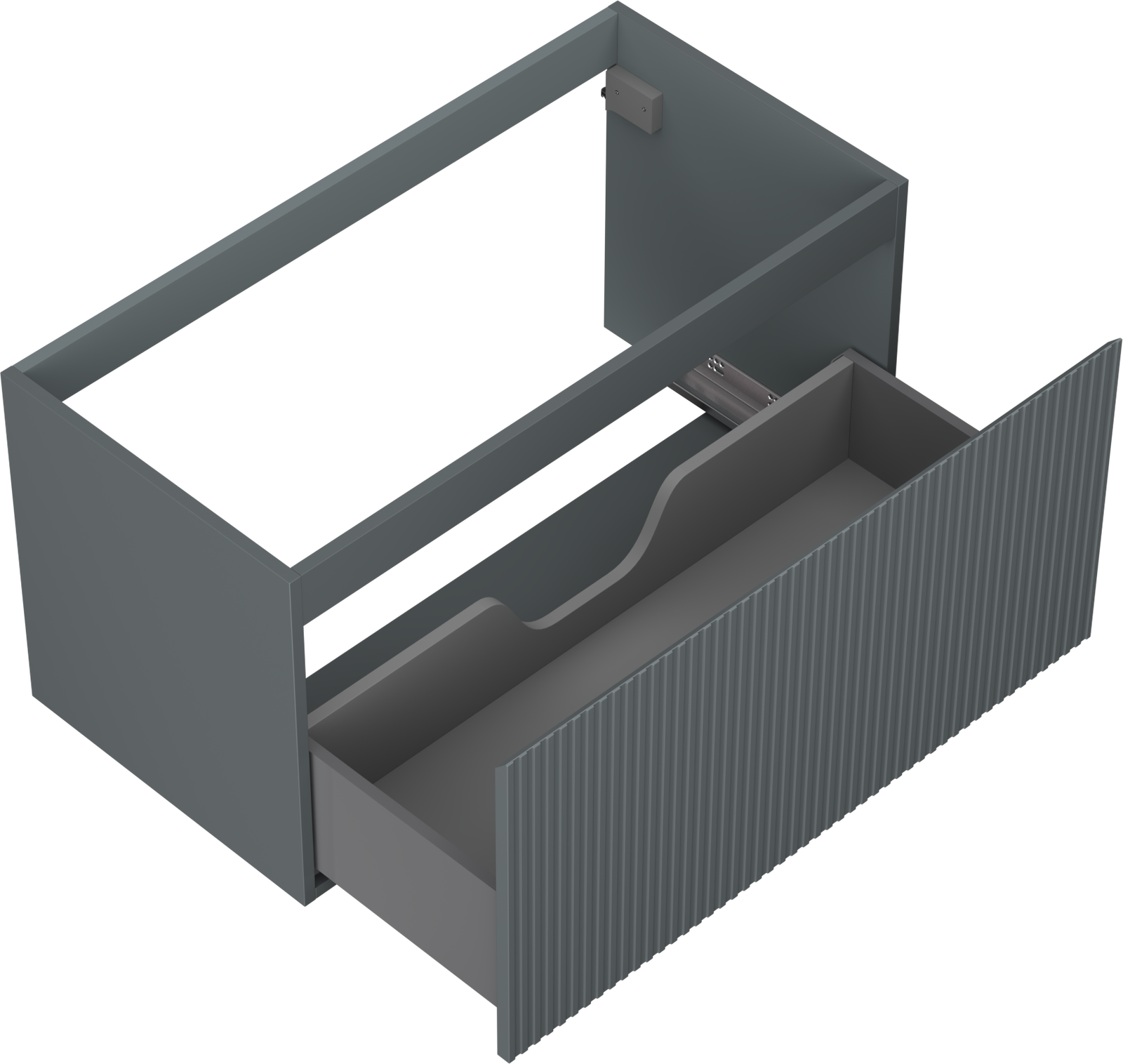 Specyfikacja produktu: Szerokość: 90 cm Wysokość: 47 cm Głębokość: 46 cm Kolor korpus: Grafit mat Materiał korpus: Płyta lakierowana Kolor front: Grafit mat Materiał front: Płyta MDF lakierowana Struktura frontu: Ryflowana Ilość szuflad: 1 Przestronna szuflada z funkcją cichego domyku Pełny wysuw ułatwiający dostęp do zawartości szuflad Powierzchnia odporna na promienie UV Do kompletowania z blatem lub umywalką Otis, Vela Produkt zmontowany